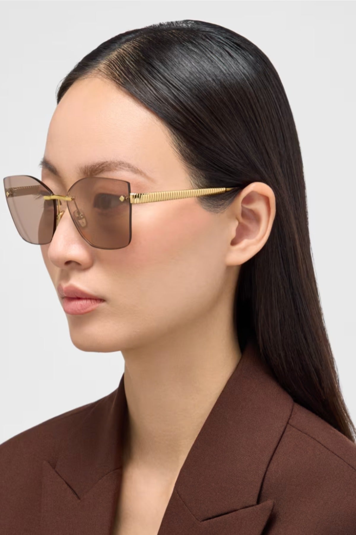 Tubogas sunglasses featuring a squared rimless frame and gold mirror lenses. The temples are embellished with the Tubogas spiral decor, inspired by the iconic jewelry line, for a contemporary and distinctive style.
