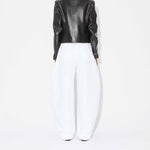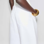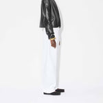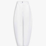 Low waist, curved leg, hardware denim buttons, tonal topstitching details, five pockets Signature dart topstitching details at the back |