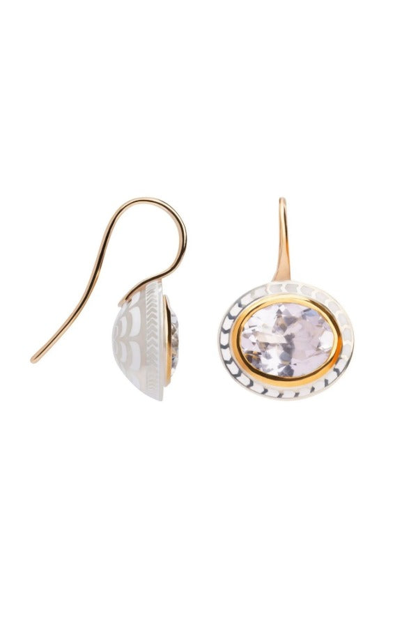 Alice Cicolini 14K YG Hook SS with Lacquer Enamel, 22K Gold Bezel with White Topaz