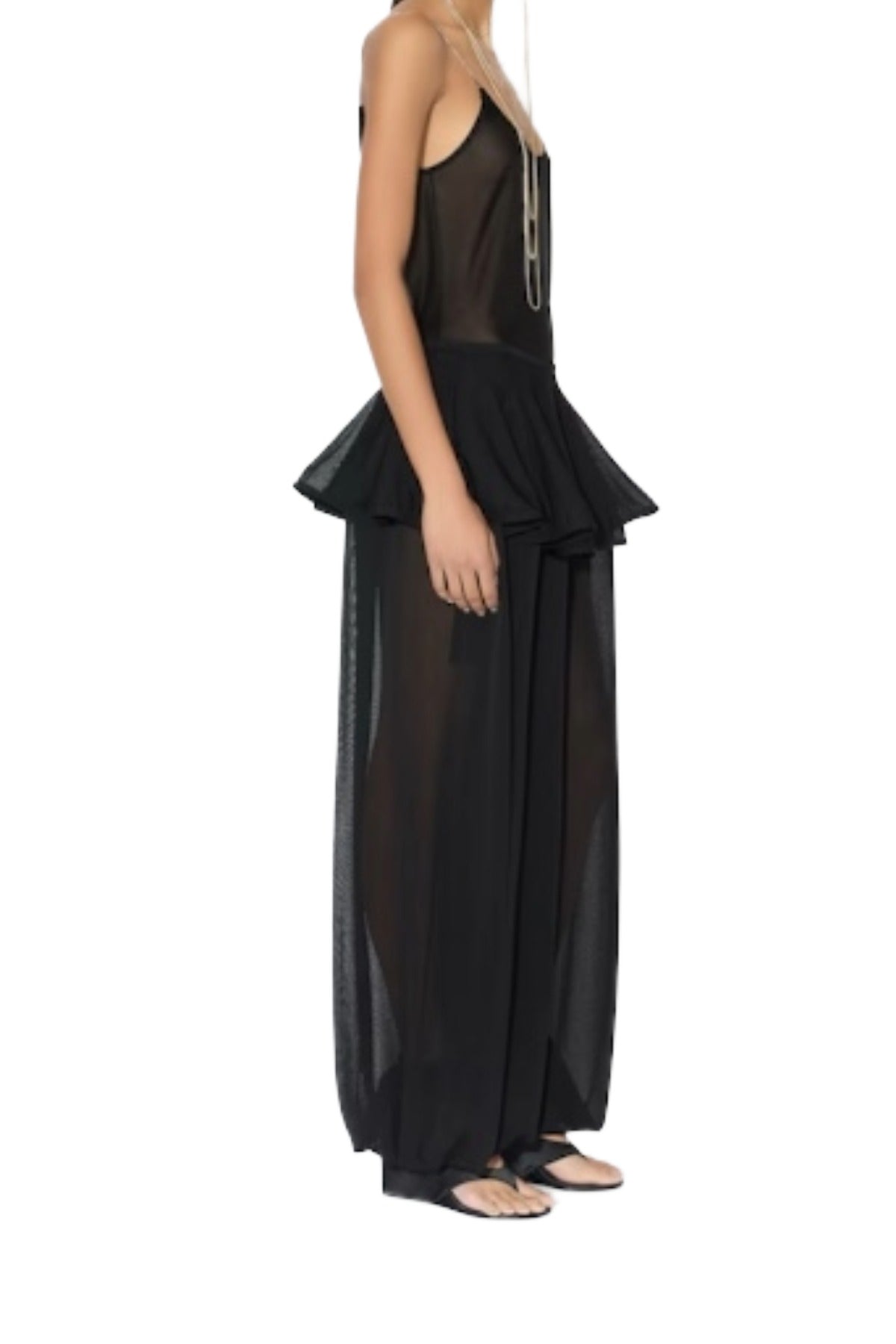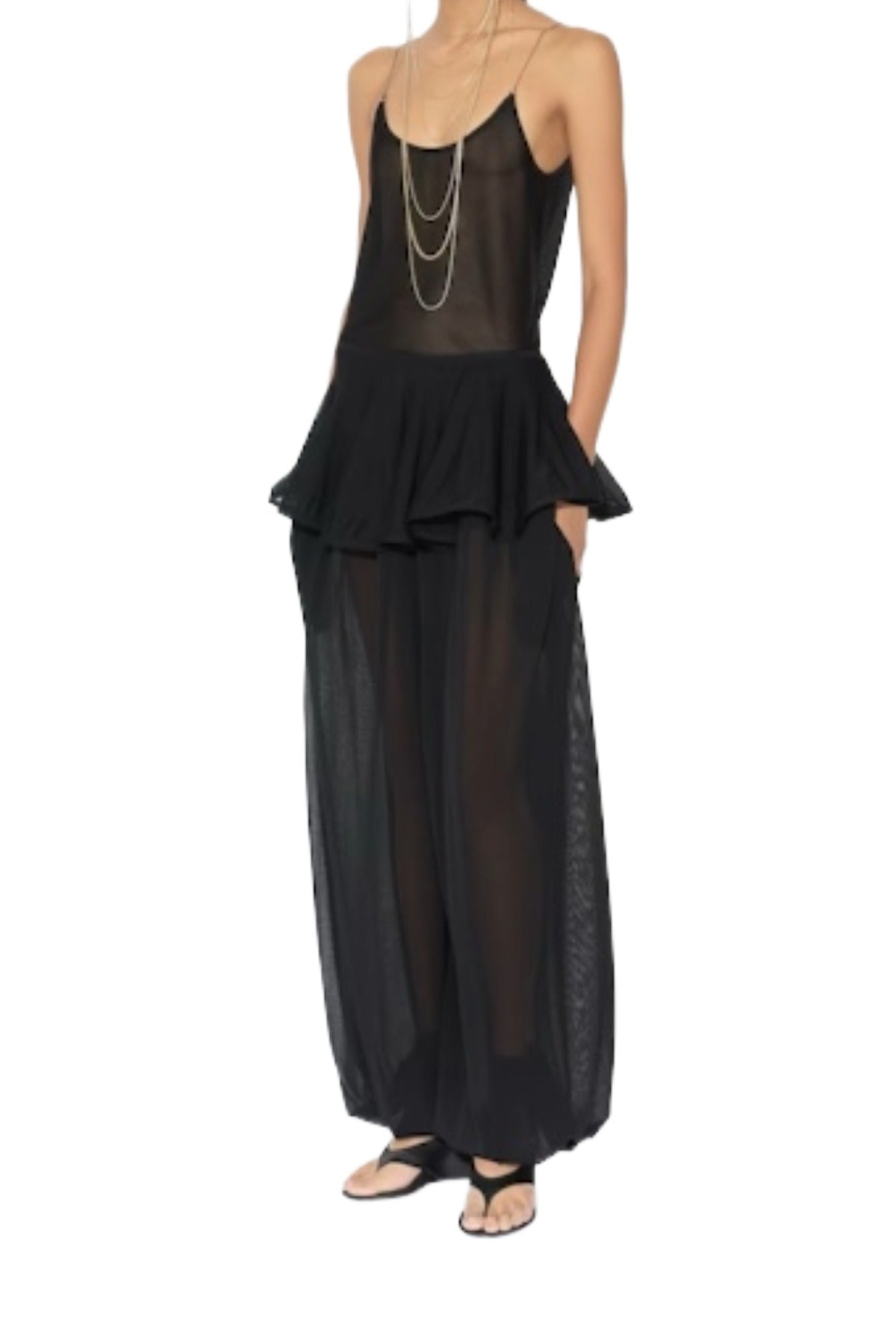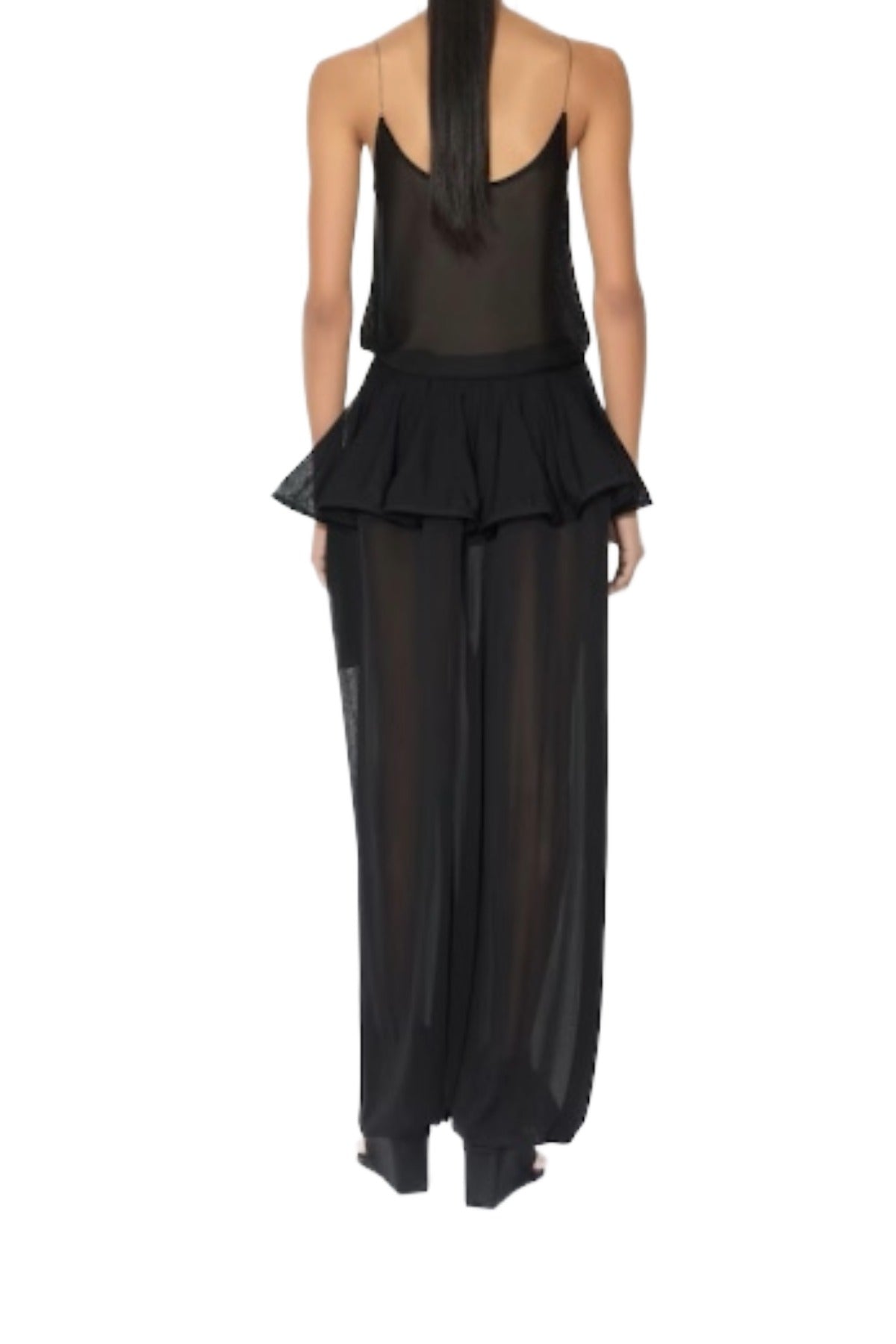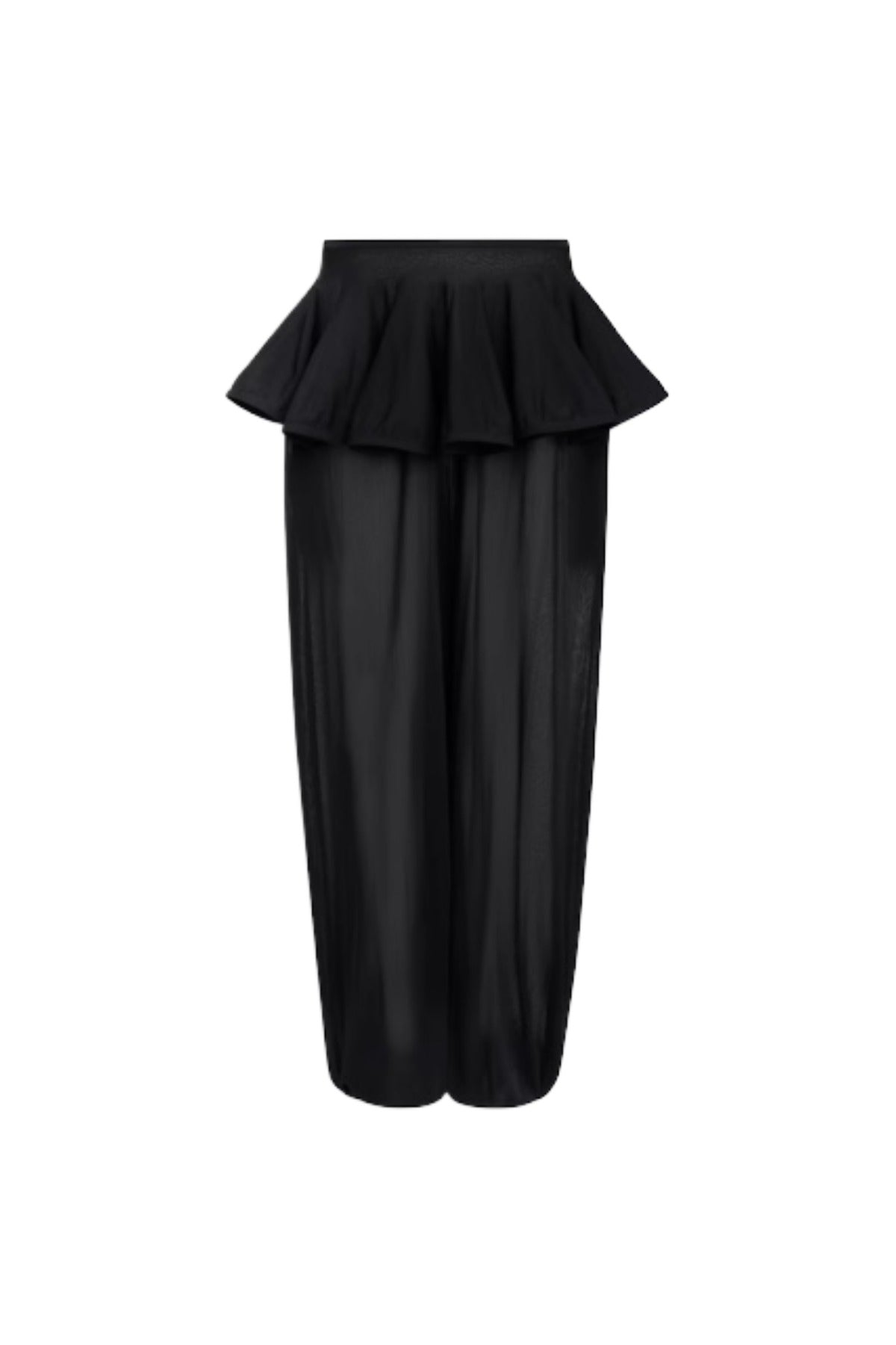 Peplum pants with skirt overlay in fine viscose knit