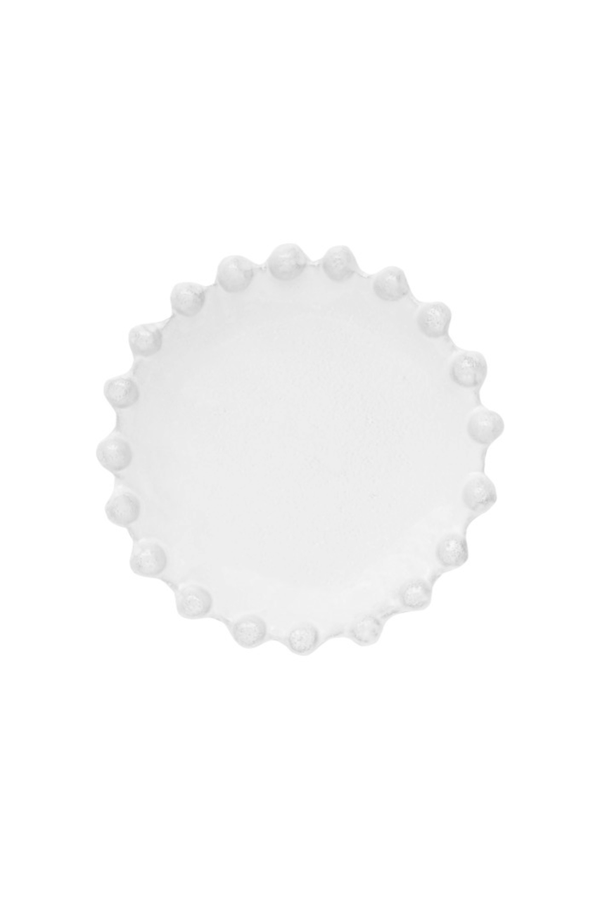 Some thirty models, adorned with beading, embrace the spirit of 18th-century bubble carafes. Teapots, pitchers and cups in varying sizes, as well as tiered serving dishes, make this the perfect collection for sumptuous breakfasts or afternoon teas. The hand-cut beads on each plate form a necklace that will encircle and embellish any delicacy.Ceramic handmade in Paris, stamped with the Astier de Villatte monogram and the initials of the artisan who crafted it.