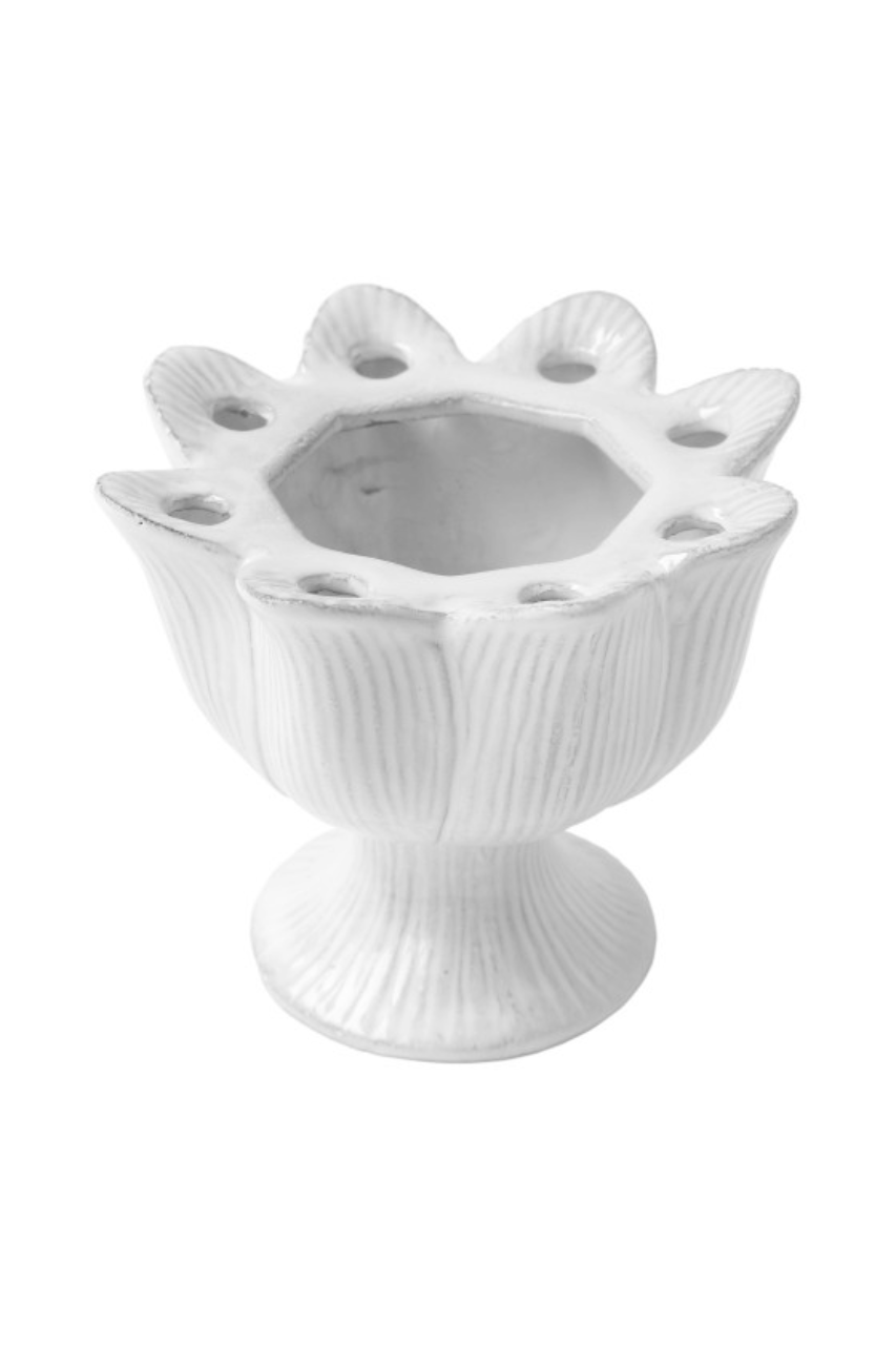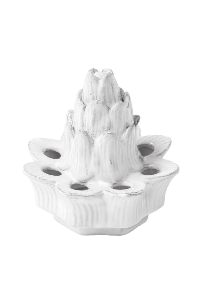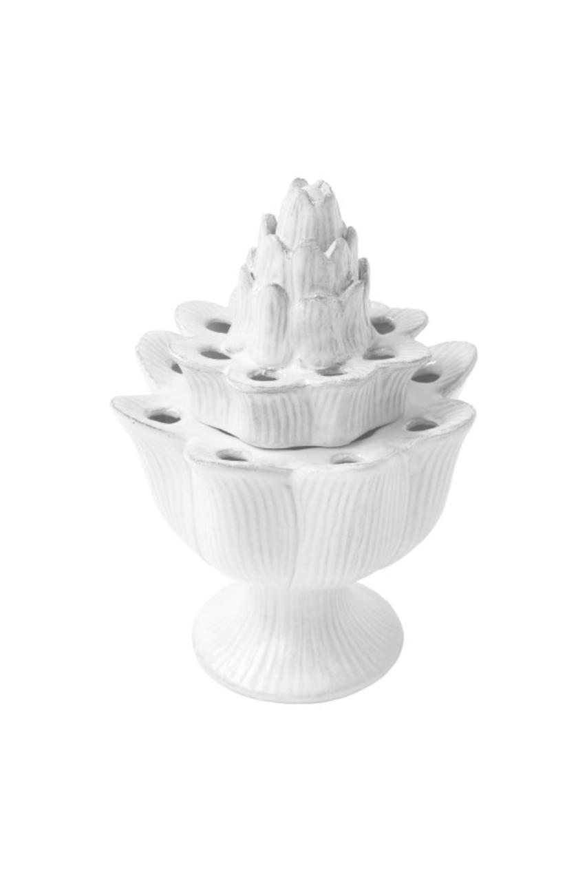 Artichoke Flower Holder Shaped from black terracotta clay, finished with a white porcelain glaze. From Astier de Villatte, each piece is truly one-of-a-kind, entirely handmade in Paris, France. |