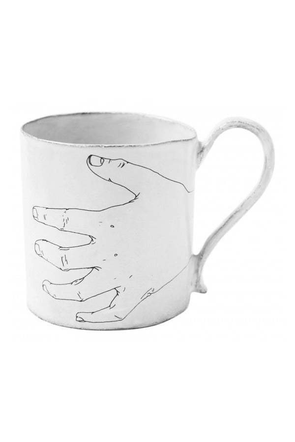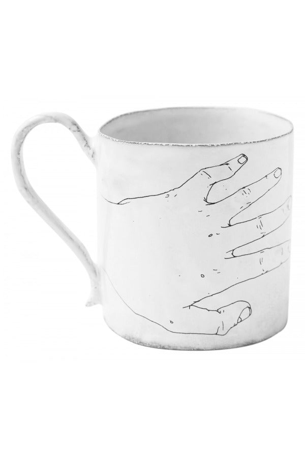Astier de Villatte Lou Doillon Cup Open Hands is part of the Lou Doillon Collection. Lou Doillon loves observing and drawing hands, her left hand becoming the model for her right. As is reflected in the 17 mischievous hand drawings she has created for 17 white Astier de Villatte ceramic cups. No two are alike.