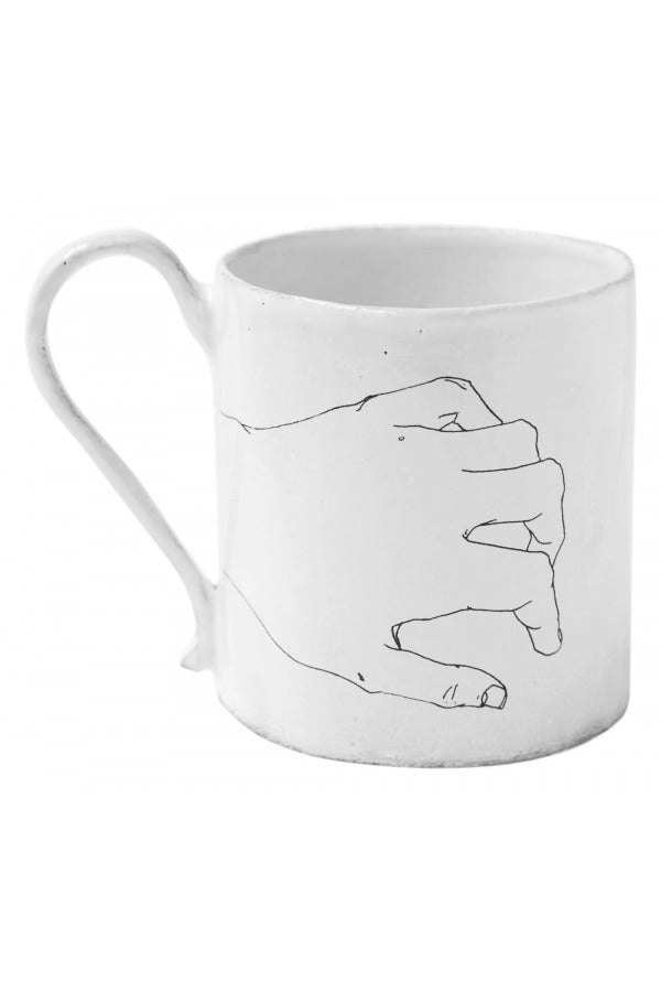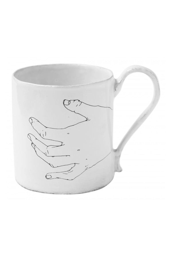 Astier de Villatte Lou Doillon Cup Two Hands is part of the Lou Doillon Collection. Lou Doillon loves observing and drawing hands, her left hand becoming the model for her right. As is reflected in the 17 mischievous hand drawings she has created for 17 white Astier de Villatte ceramic cups. No two are alike.