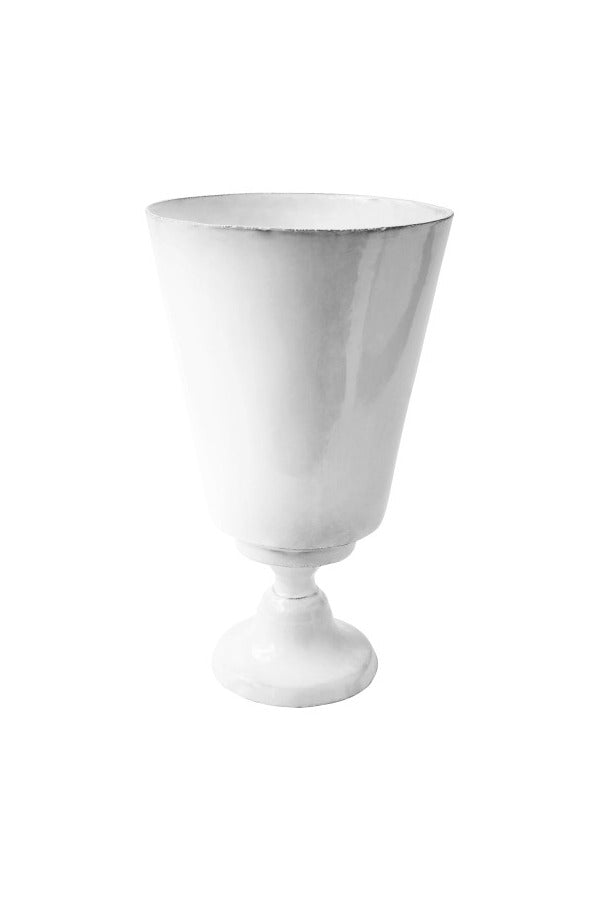 Astier de Villatte Small Simple Vase is part of the Simple Collection. Round shapes with rigorously simplified designs and volumes, edged with a border. Perennial bestsellers: the hot-chocolate cup and the large plate.
