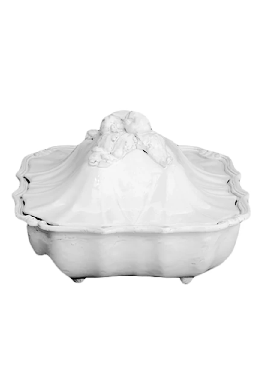 The Régence Collection: One of the House’s first creations, inspired by an ancient French dish. An attractive arabesque is moulded, stretched, cut-out and multiplied, creating curves and counter-curves. The complete service is made up of 28 classic and innovative models. Pieces with a wide range of uses, from small oval dishes for aperitif radishes to “shark” platters for giant fish dishes. Ceramic handmade in Paris, stamped with the Astier de Villatte monogram and the initials of the artisan who crafted it. |