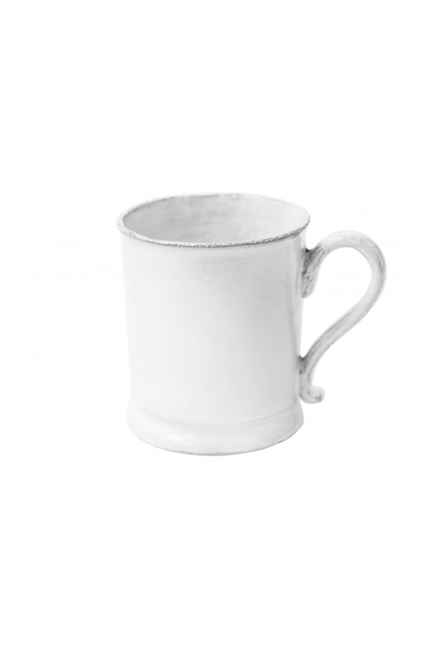 Small Colbert Mug The Colbert Collection: A collection with a classic allure, featuring a dozen vases, generous tureens, serving platters and unadorned lampshades. Shapes oscillate between Louis XIV period, rigorous lines, and curves worthy of the artist Botero. Ceramic handmade in Paris, stamped with the Astier de Villatte monogram and the initials of the artisan who crafted it. |