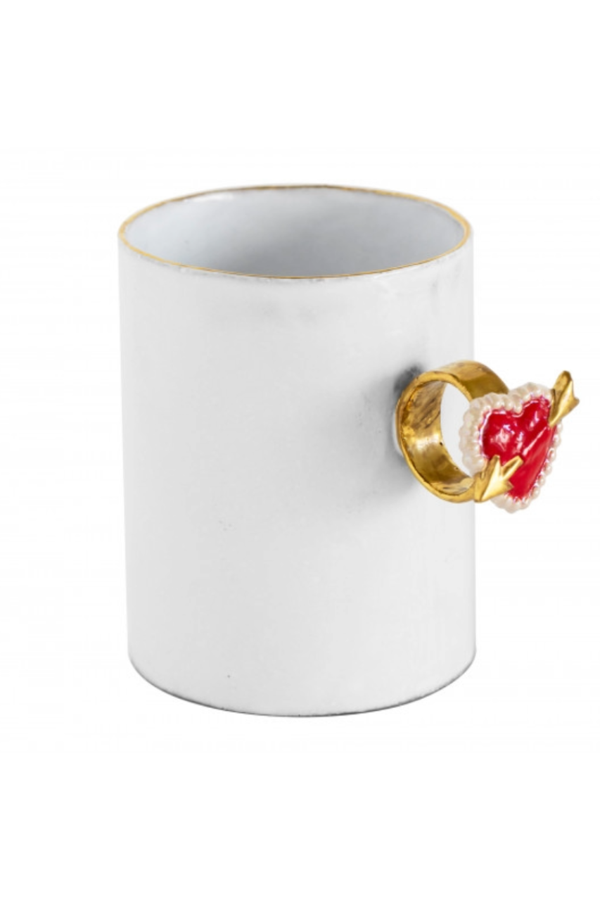 Valentin Cup The Serena Collection: A joyful collaboration with the artist Serena Carone and her world of eclectic and wonderfully unusual objects. The result is a range of cups in which rings of all kinds replace the traditional handles; jewellery and treasure boxes; and exquisitely refined, hand-shaped incense burners. Ceramic handmade in Paris, stamped with the Astier de Villatte monogram and the initials of the artisan who crafted it. |