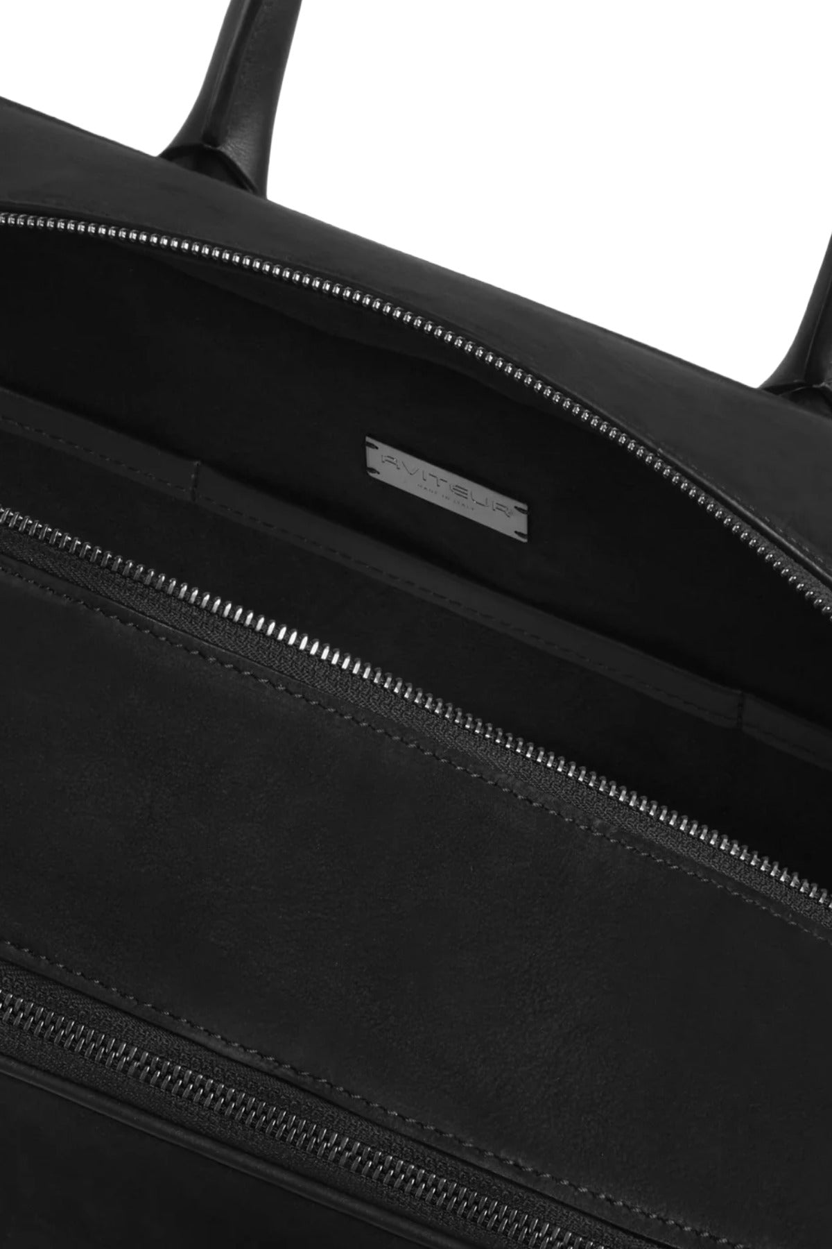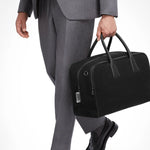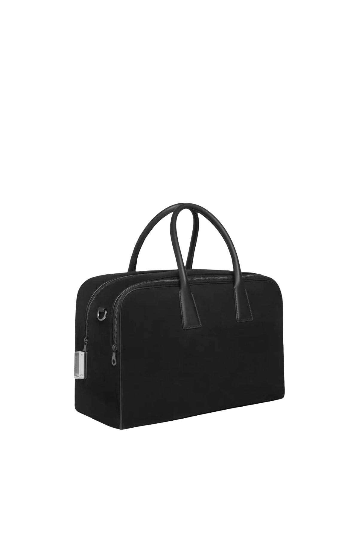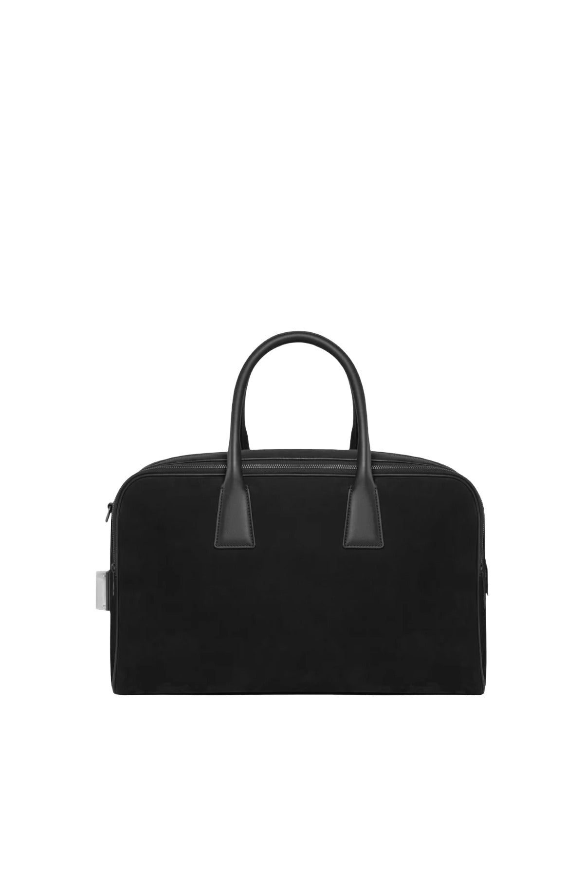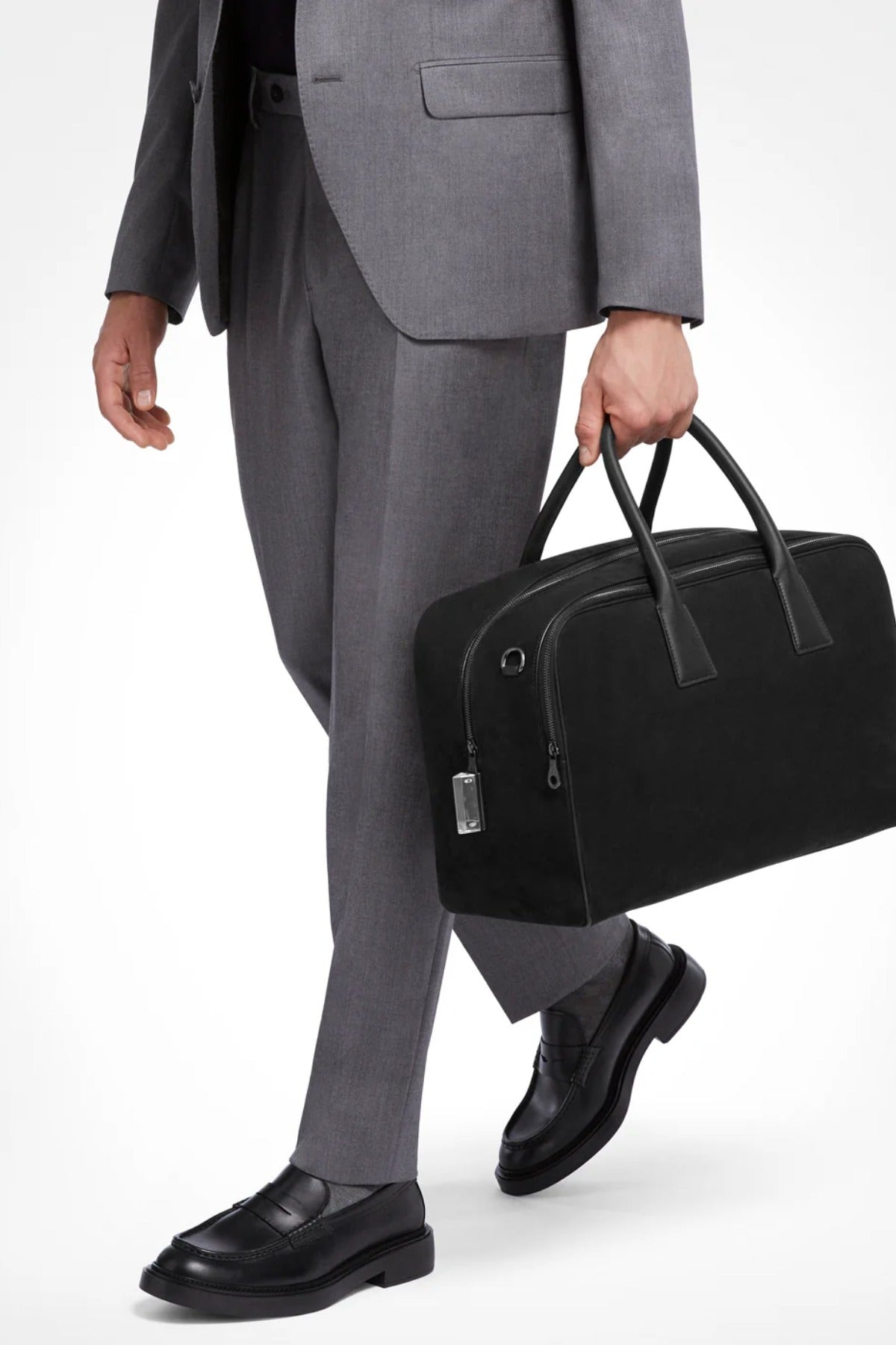 Versatile Weekend Bag in nubuck lined in Alcantara. Double zipped compartments, interior and exterior pockets, trolley sleeve, shoulder strap, Aviteur prism clasp.
