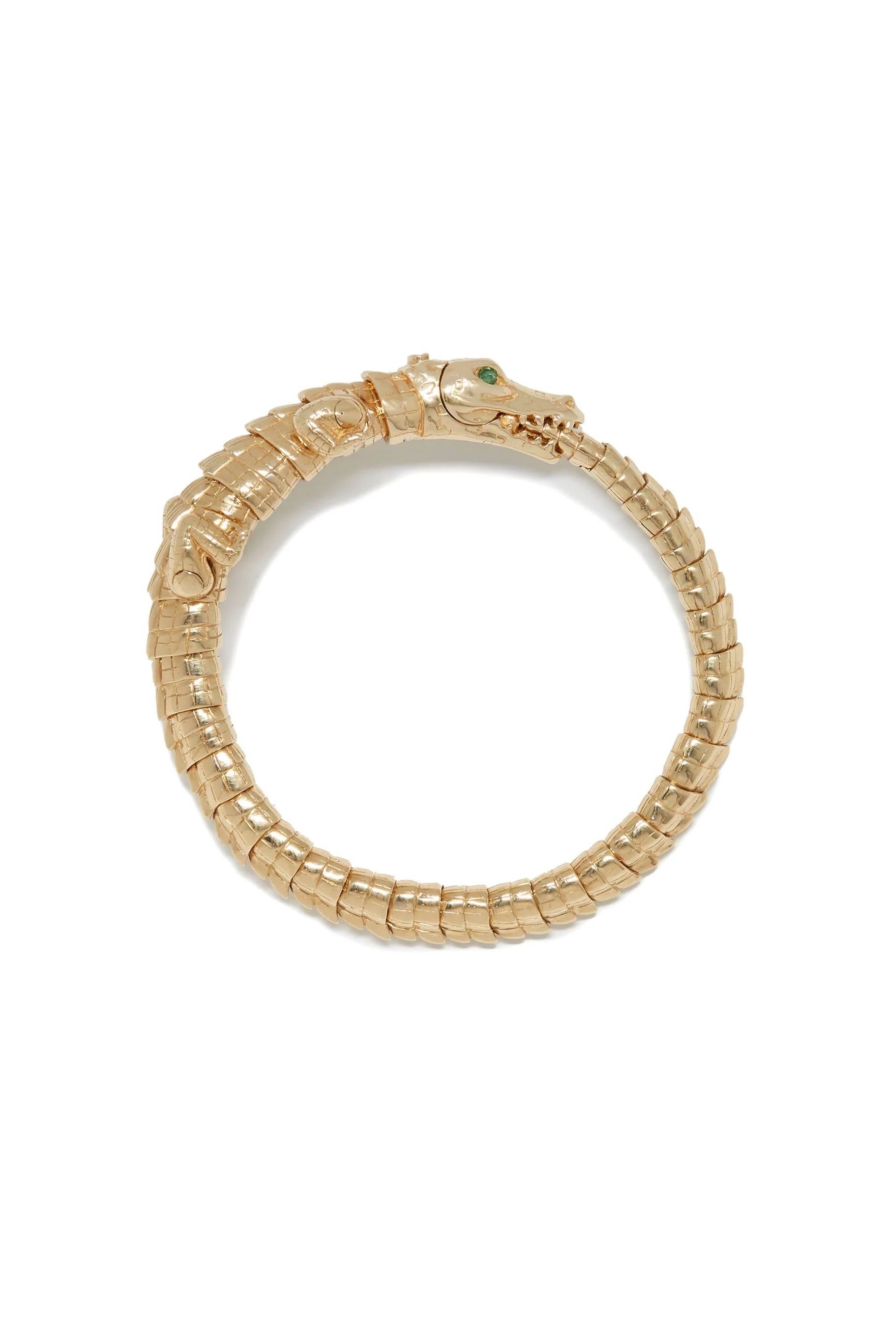 Its vivid green tsavorite eyes bring a captivating presence to the design, while intricate scales, moving feet, and sculpted teeth highlight Bibi van der Velden’s signature attention to detail. Bold, imaginative, and exquisitely engineered, this bracelet is a powerful statement piece for any fine jewellery collection.