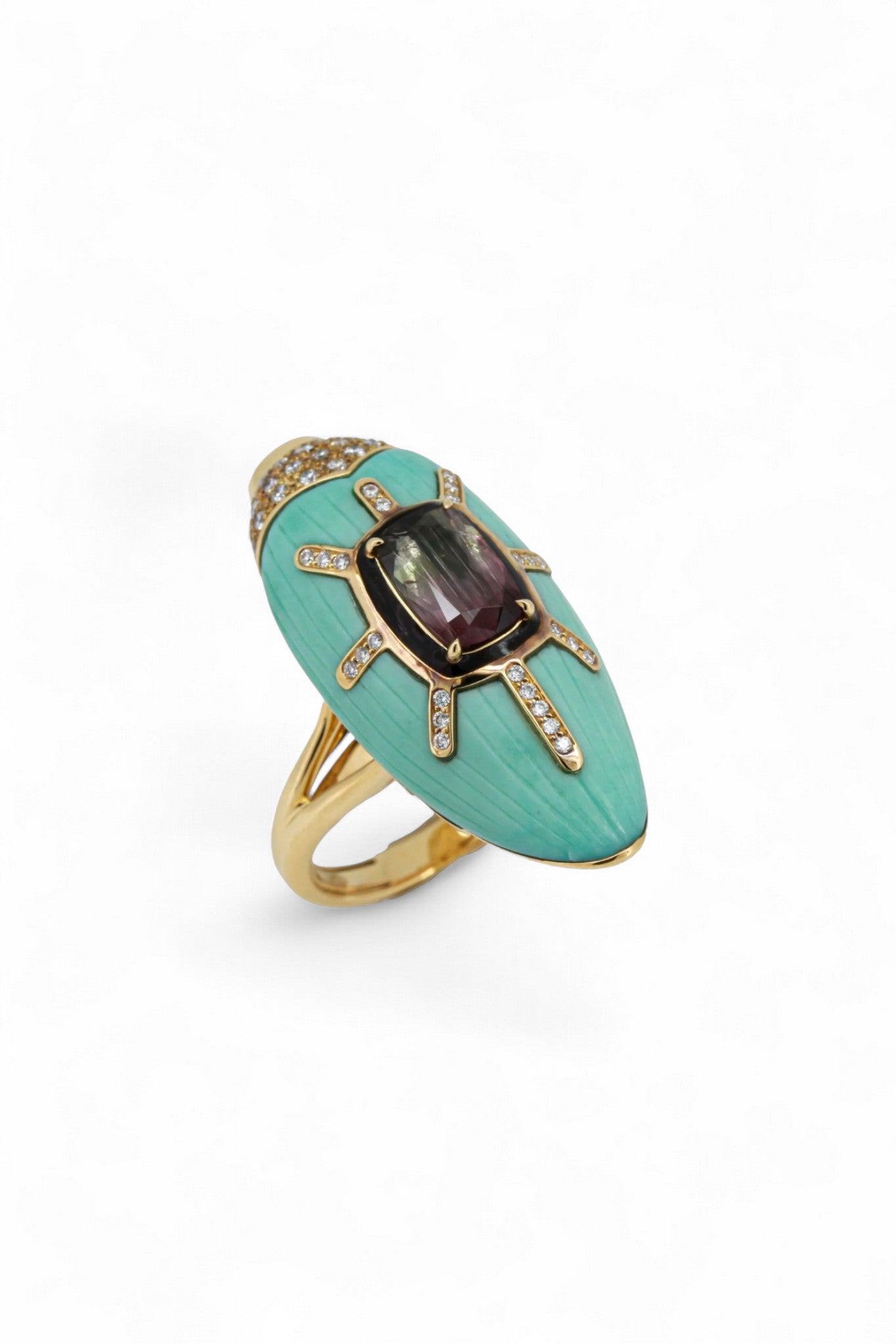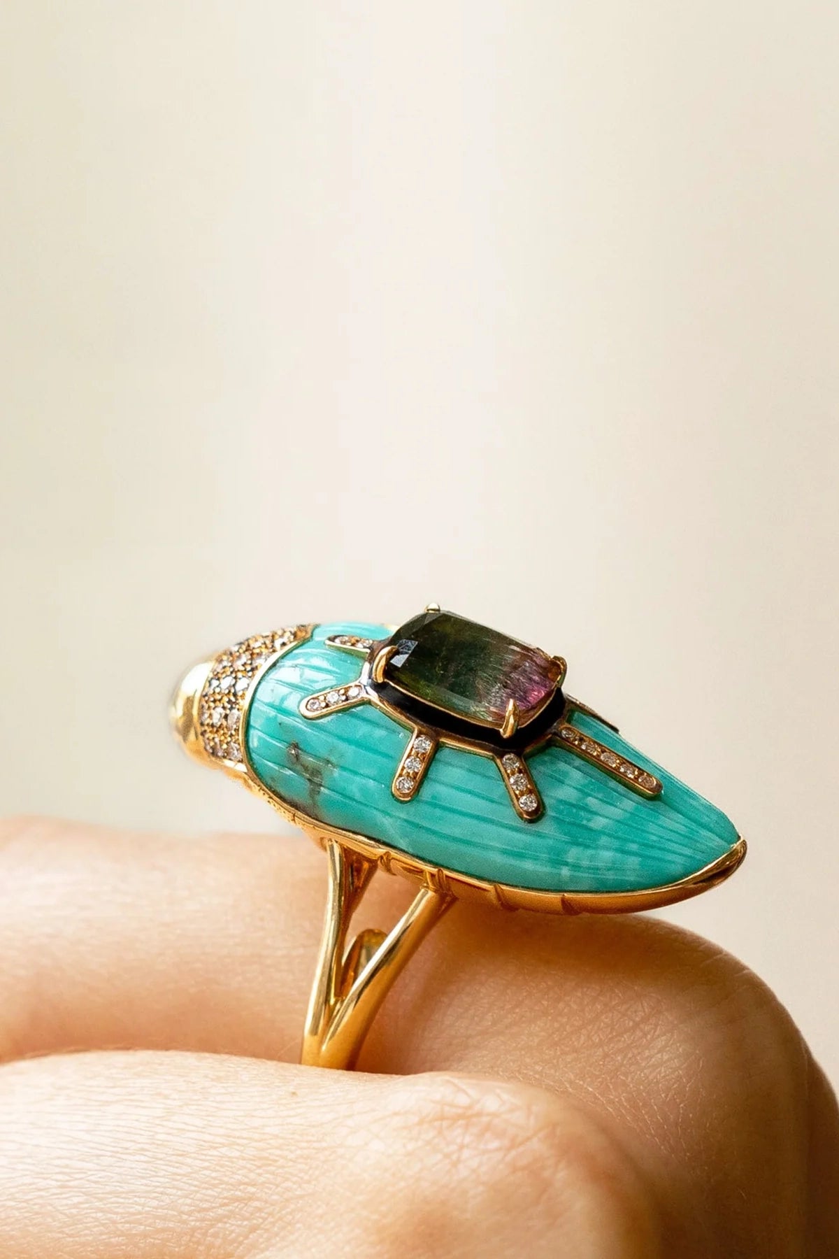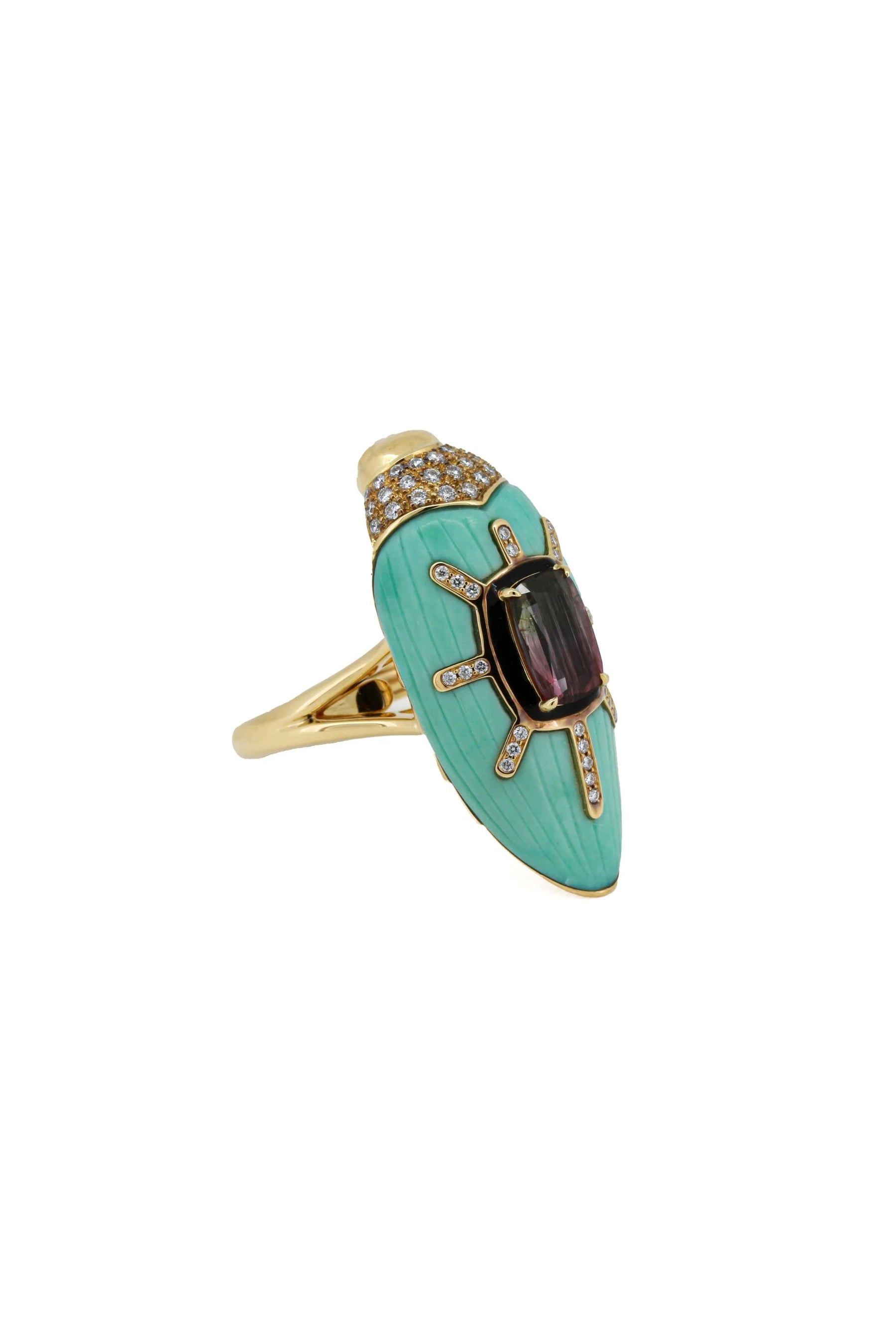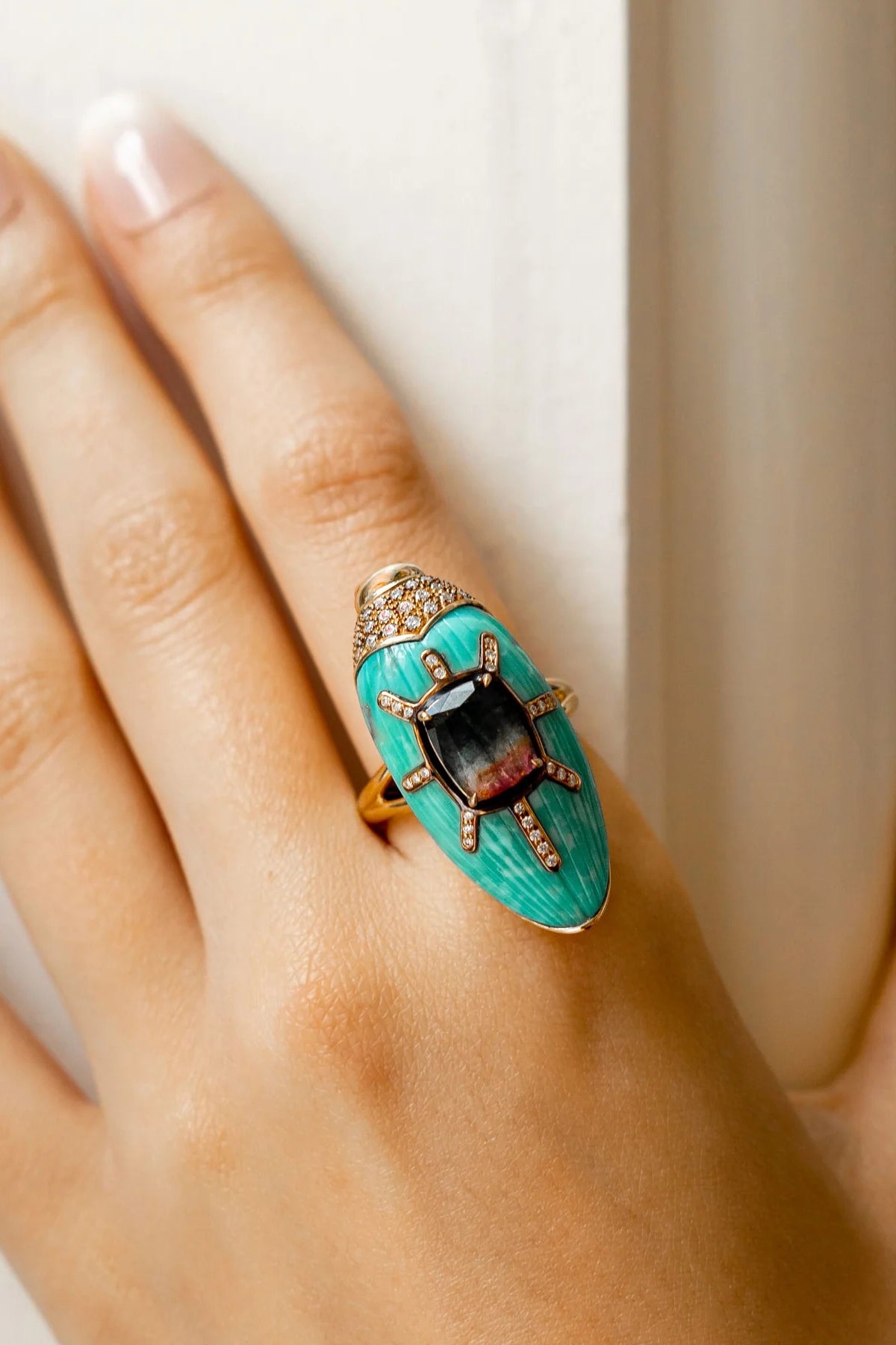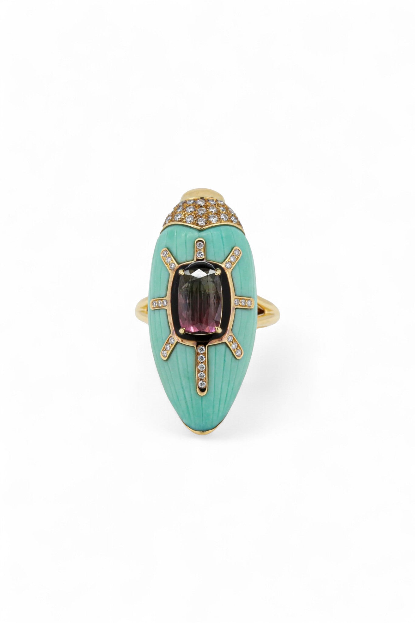 Bibi Van Der Velden Scarab Turquoise Ring with Watermelon Tourmaline