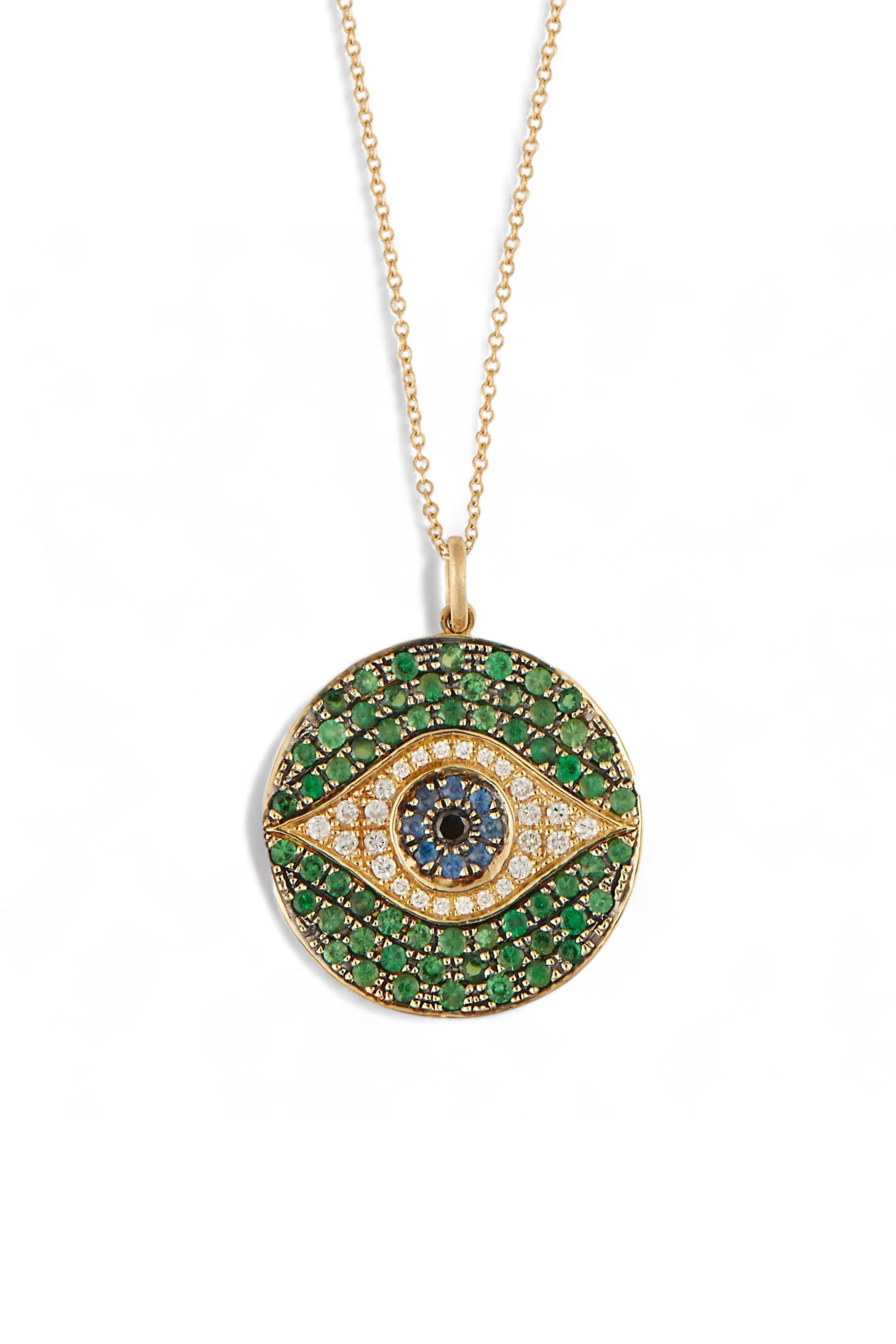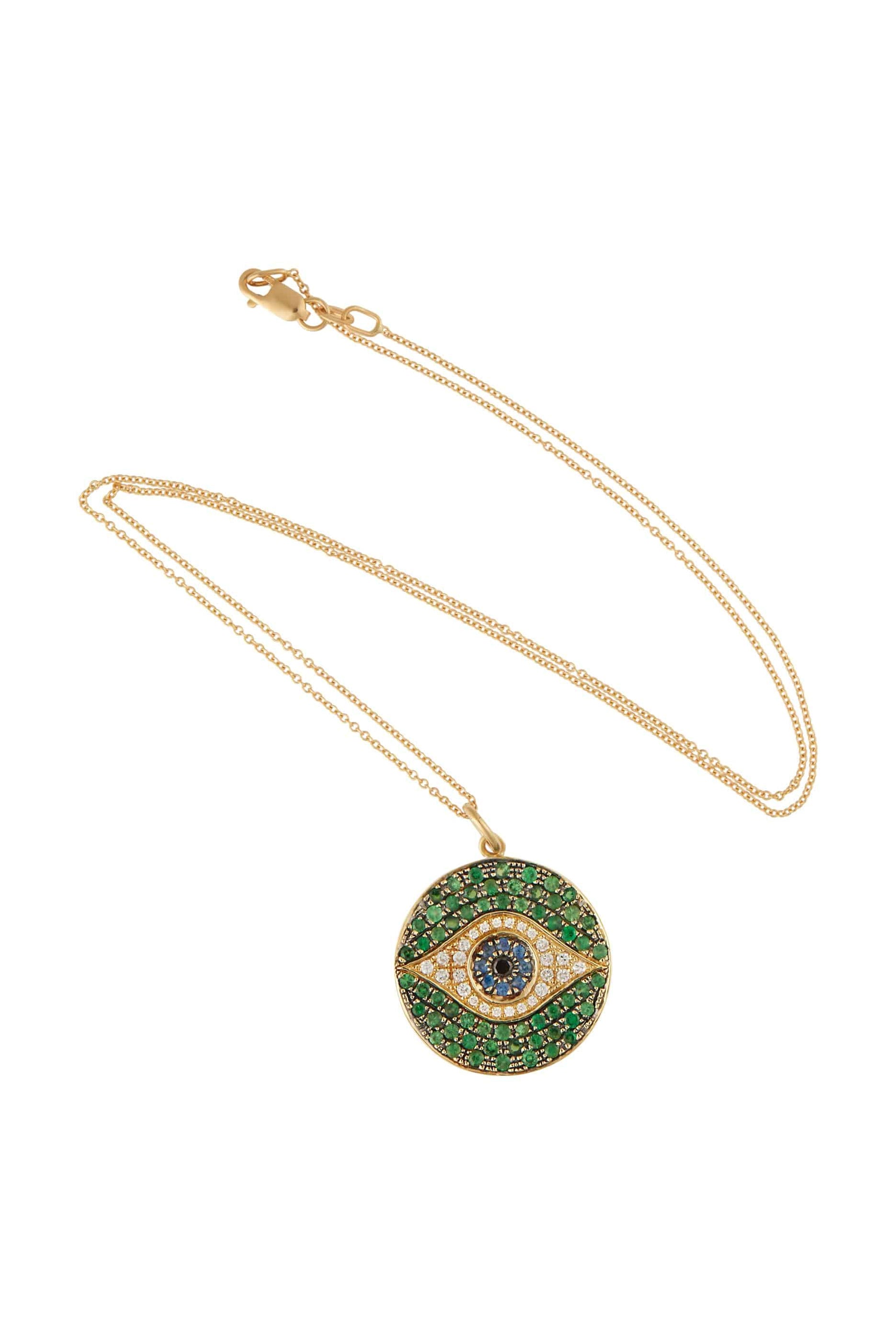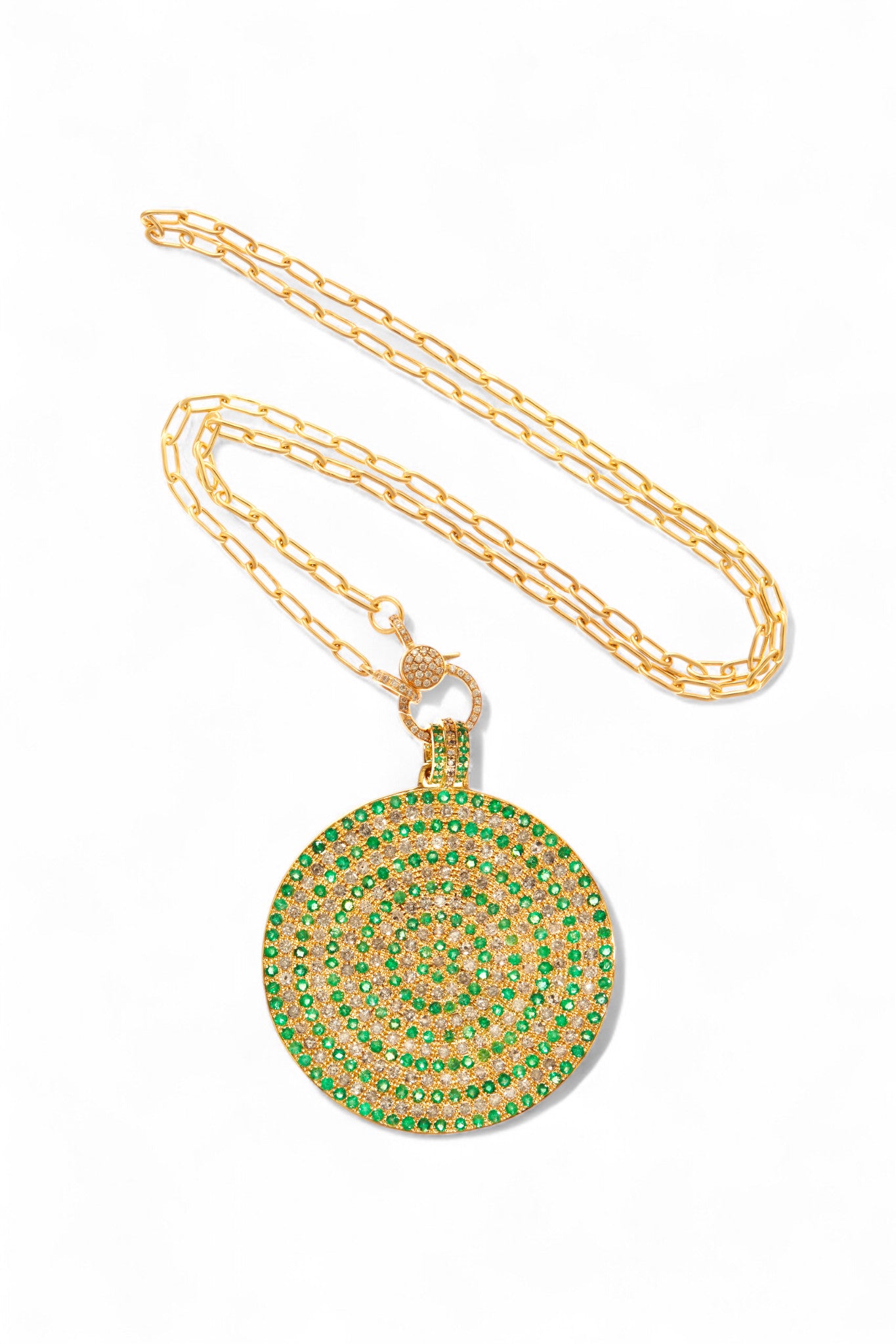 Coady Cuhla 18K Yellow Gold Green Emerald Double Bezel Cabachon Pendant