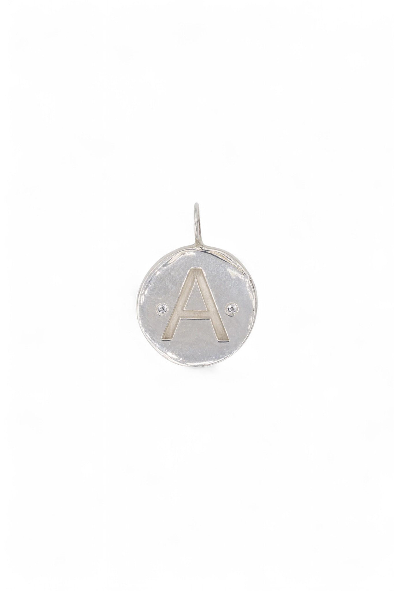 Ali Grace Sterling Silver with A Initial and 2 Diamonds Round Charm