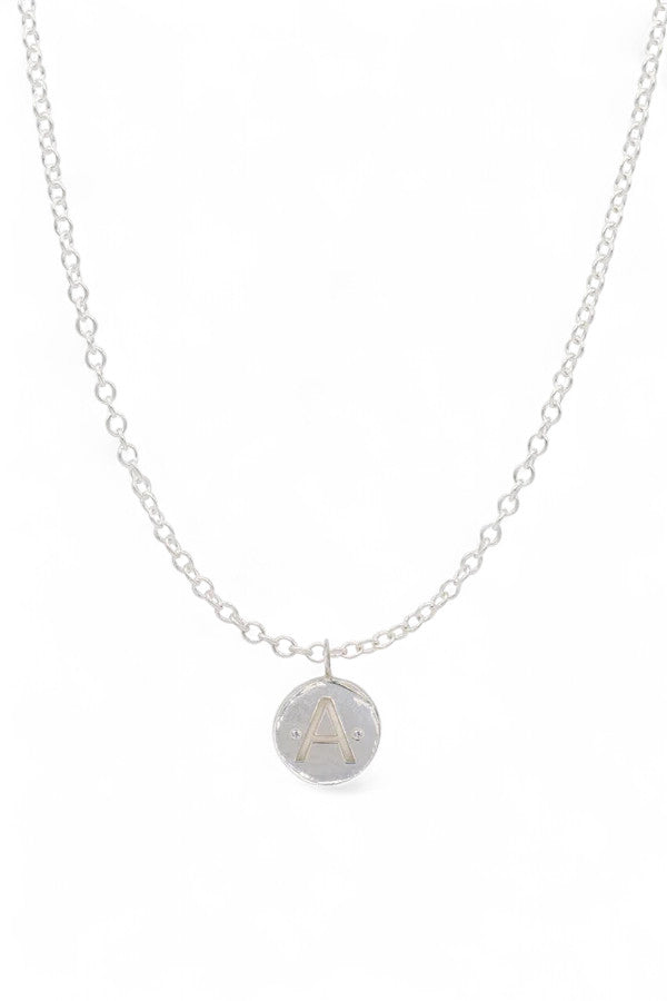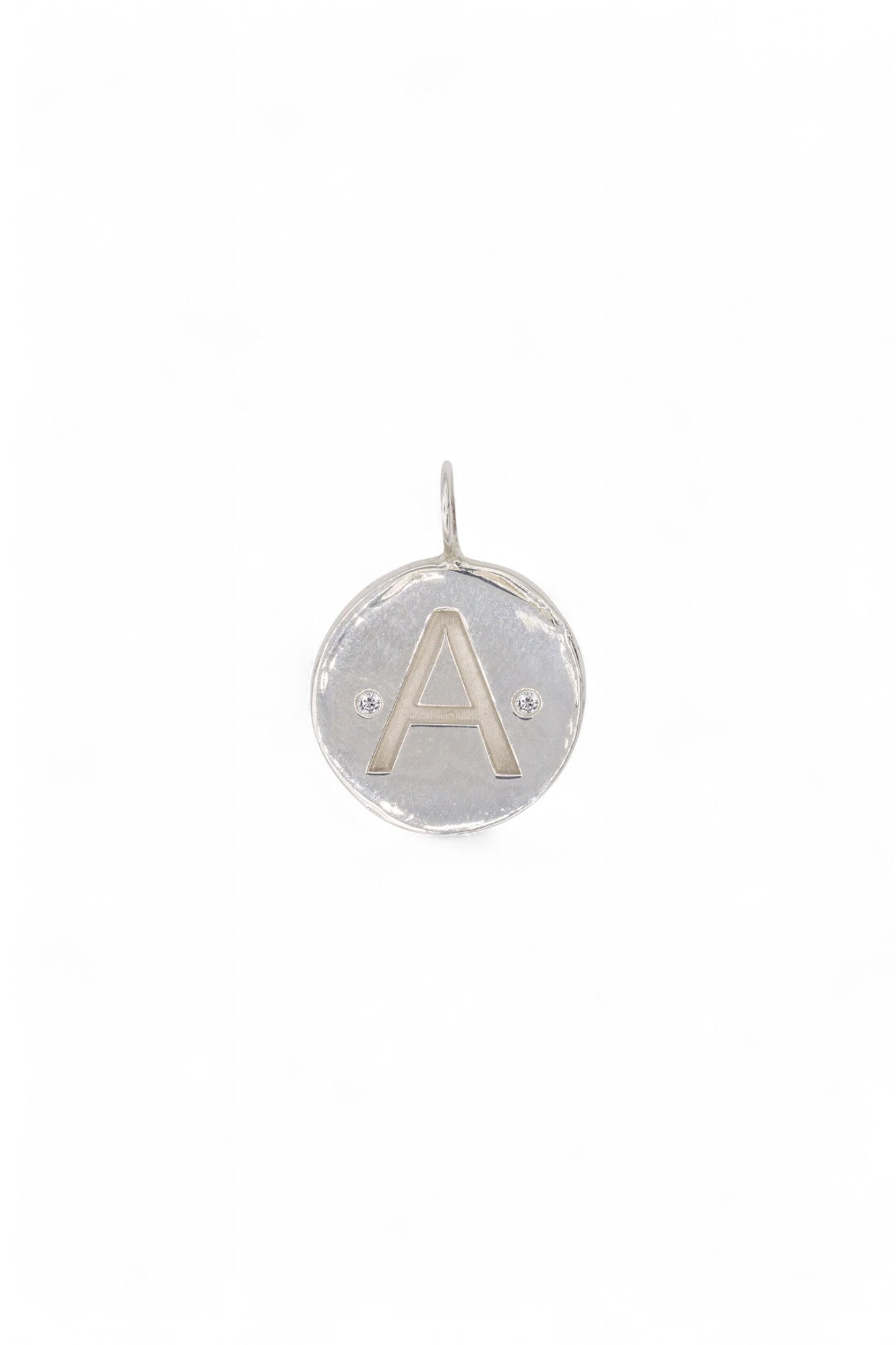 Ali Grace Sterling Silver with A Initial and 2 Diamonds Round Charm