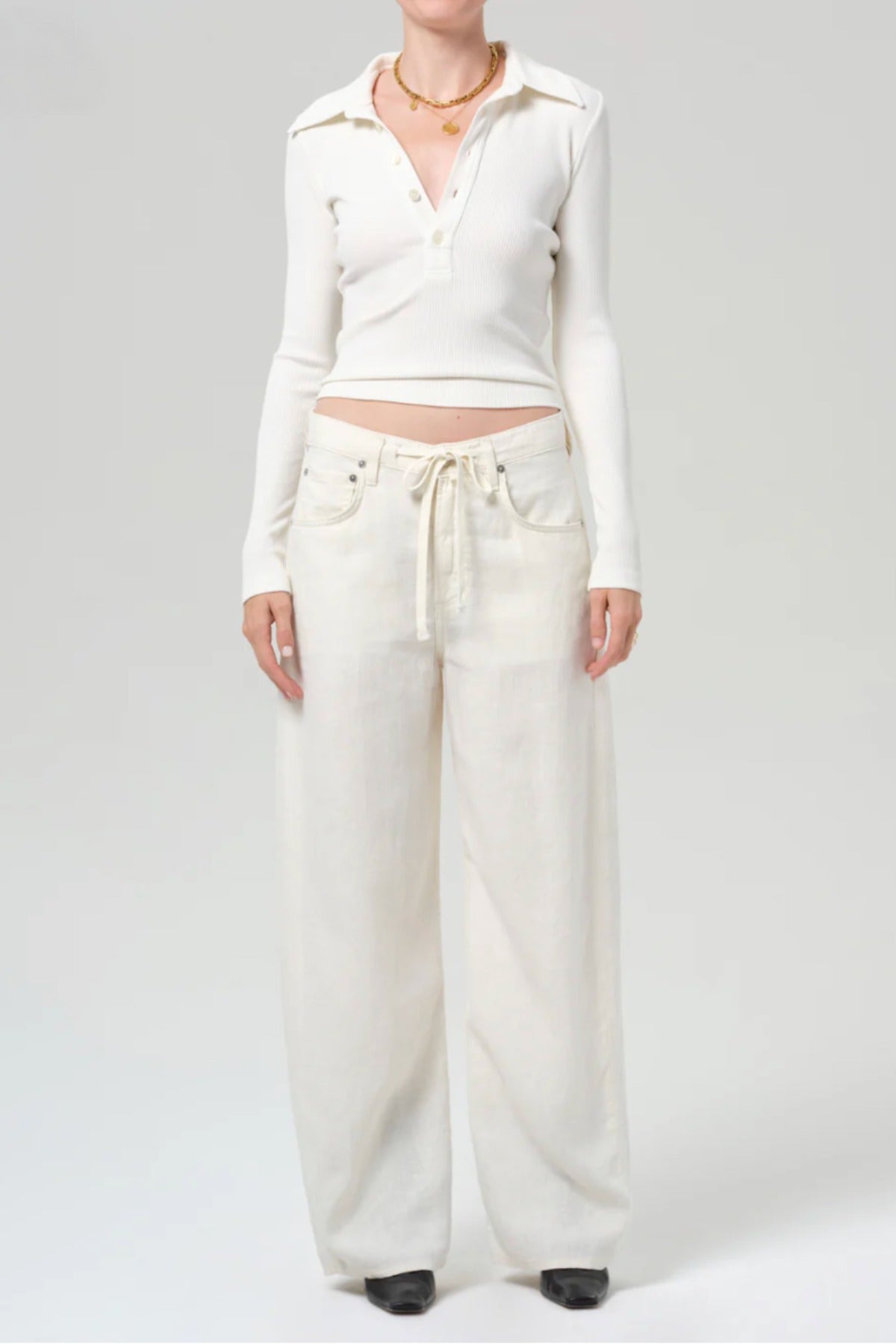 Citizens of Humanity Brynn Linen Trouser offers a relaxed fit with a comfortable drawstring waist, making it the perfect laid-back linen pant. Effortlessly stylish, this versatile trouser pairs beautifully with tonal linen pieces or a matching tank for a chic, coordinated look ideal for warm weather days and vacation-ready escapes.