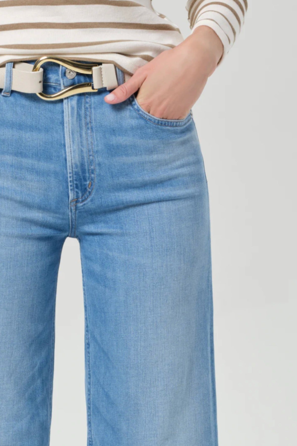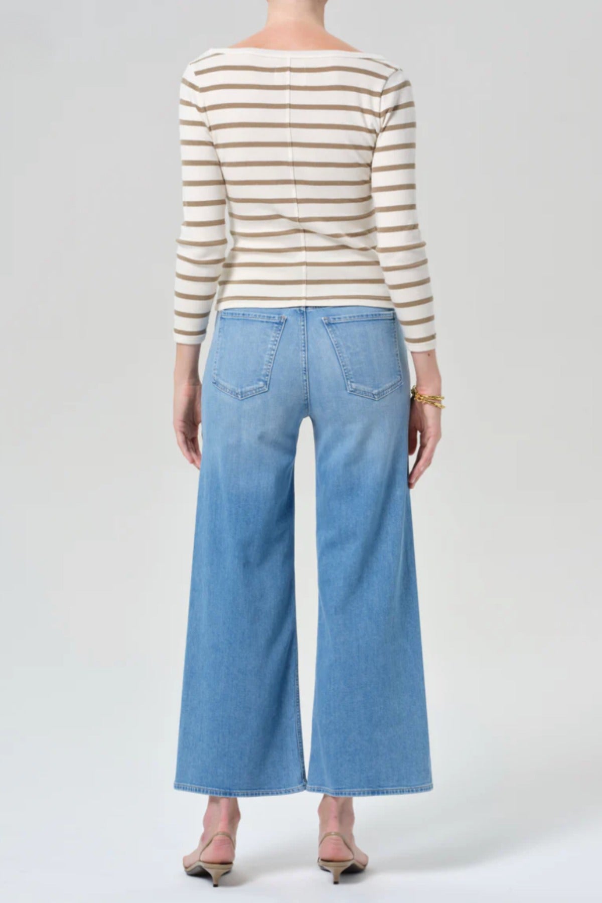 Citizens of Humanity Lyra Wide Leg Crop Jean is a vintage-inspired silhouette that sits high on the waist with an easy, relaxed top block and a voluminous wide leg. Cropped at the ankle, it offers a modern proportion with timeless appeal. Crafted from soft-stretch regenerative cotton denim, it combines structure with comfort for effortless all-day wear.