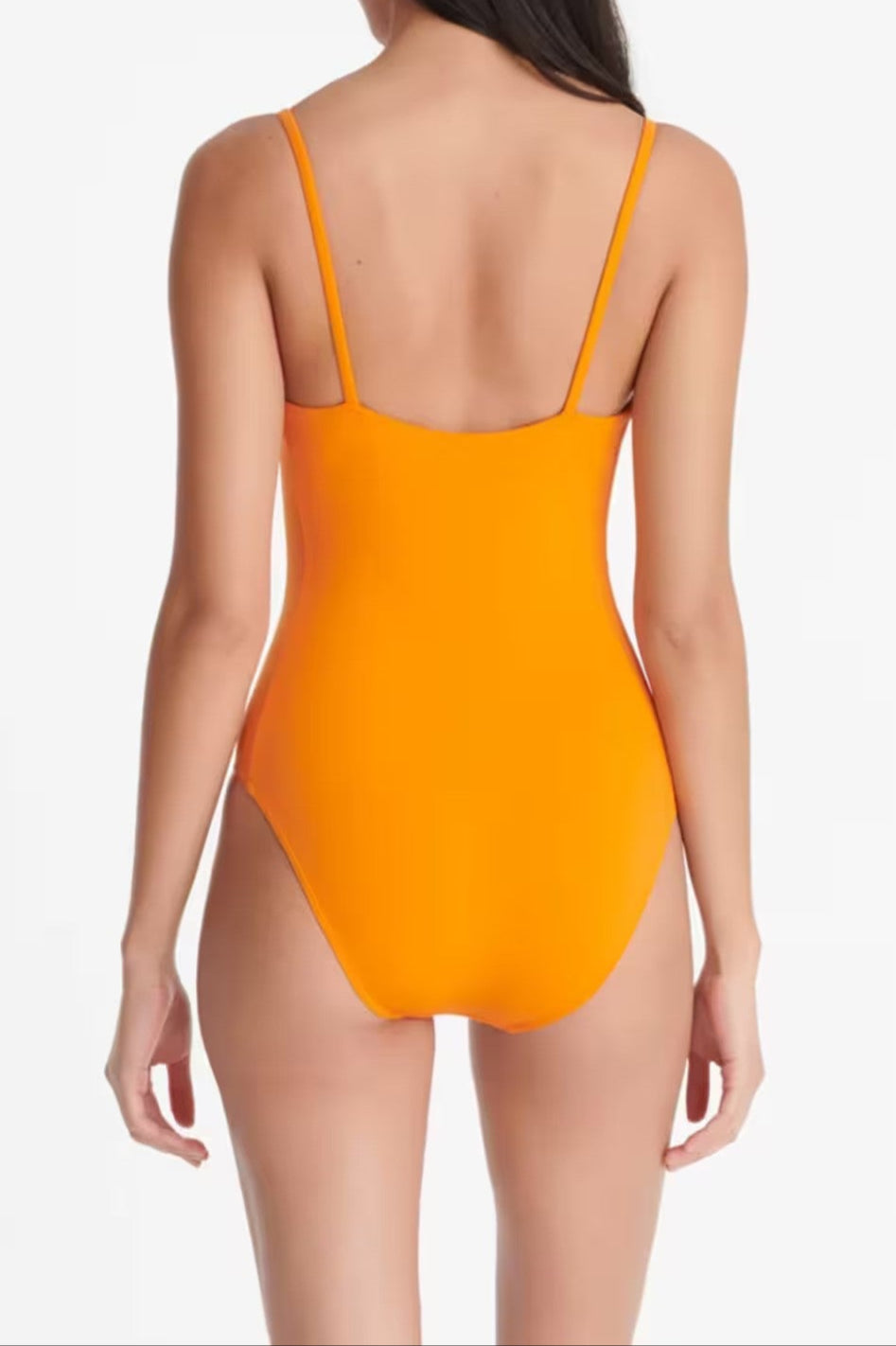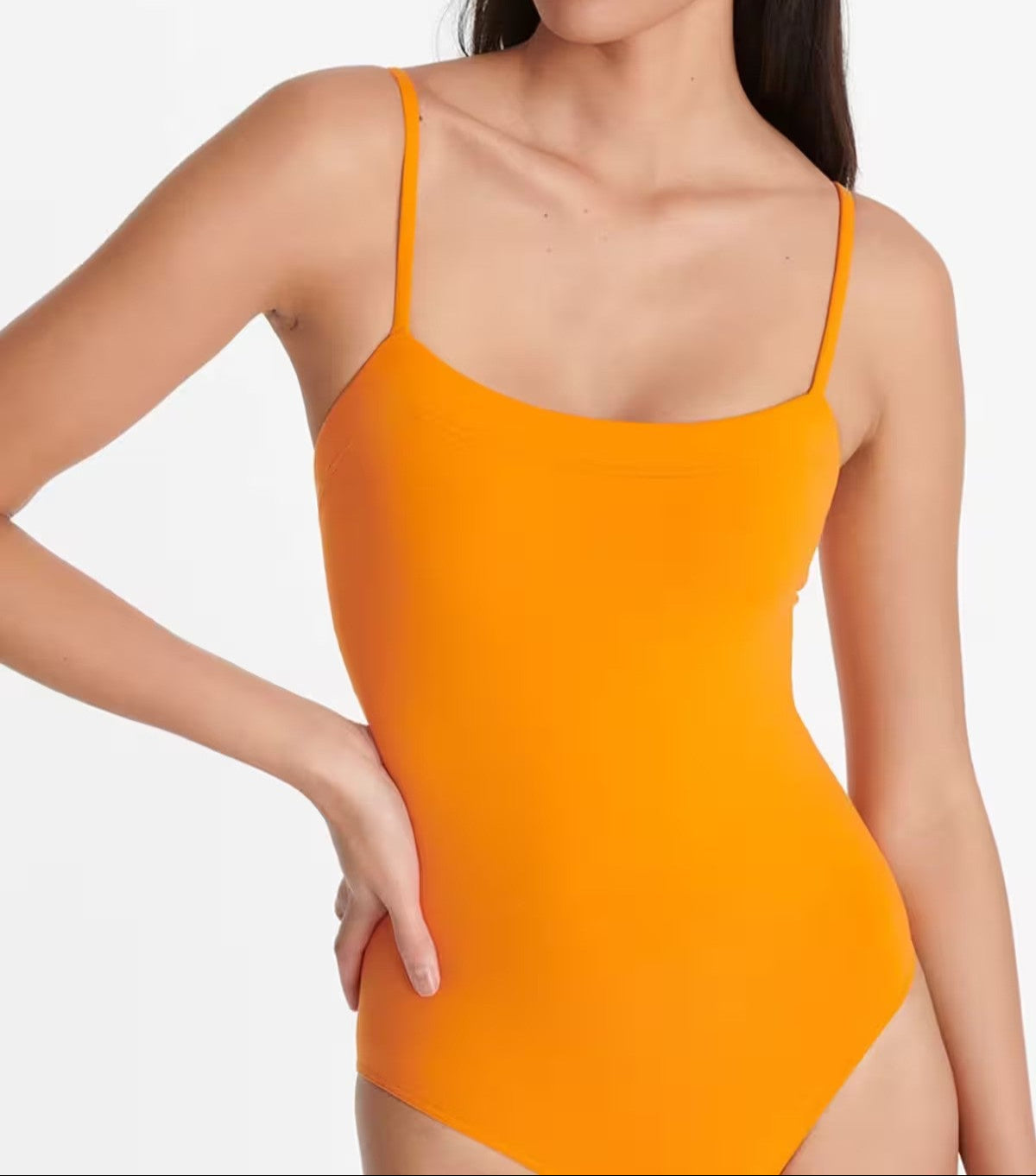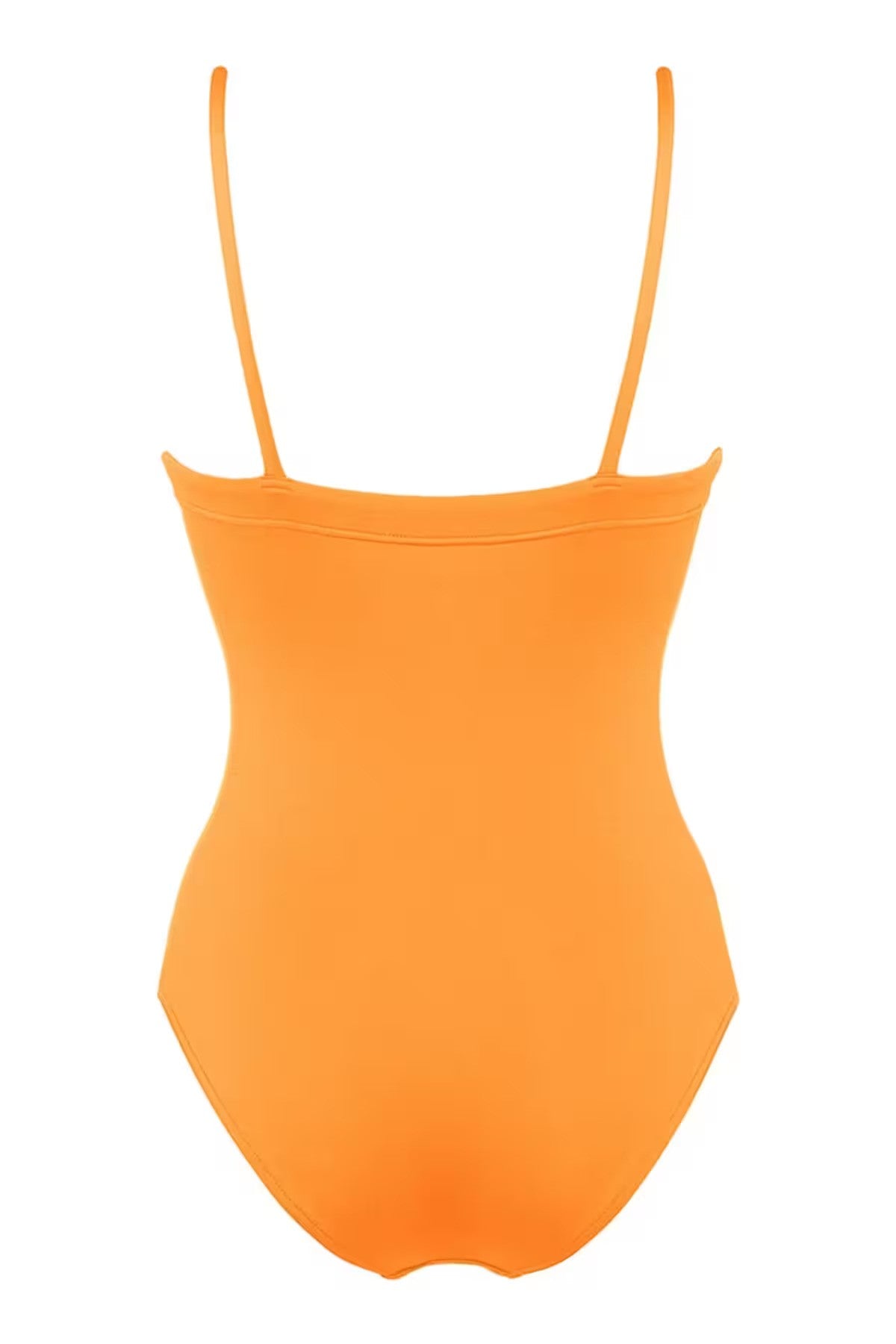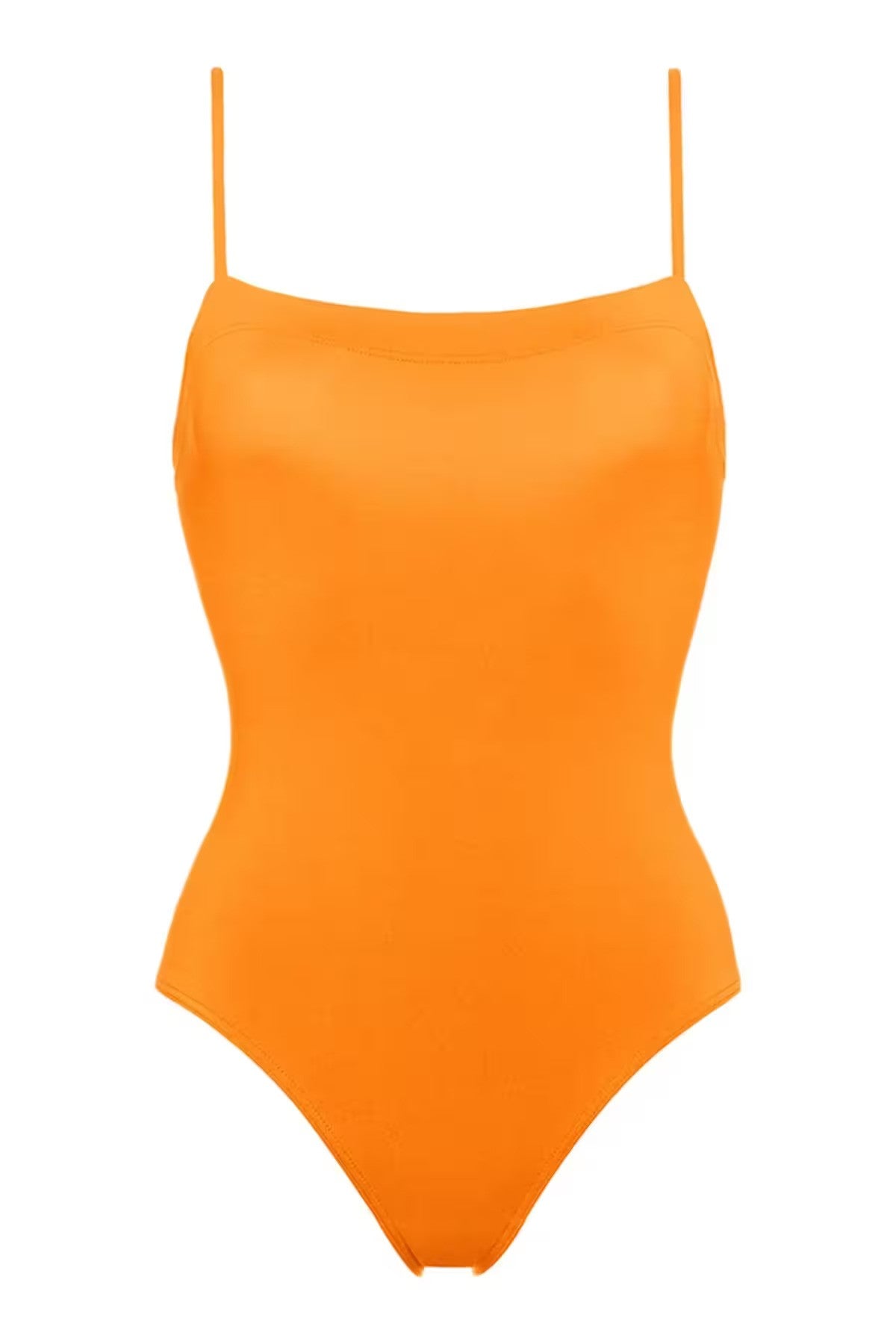 An iconic ERES style loved for its clean lines, this one-piece swimsuit features a straight neckline framed by delicate straps. It shows off all body types.