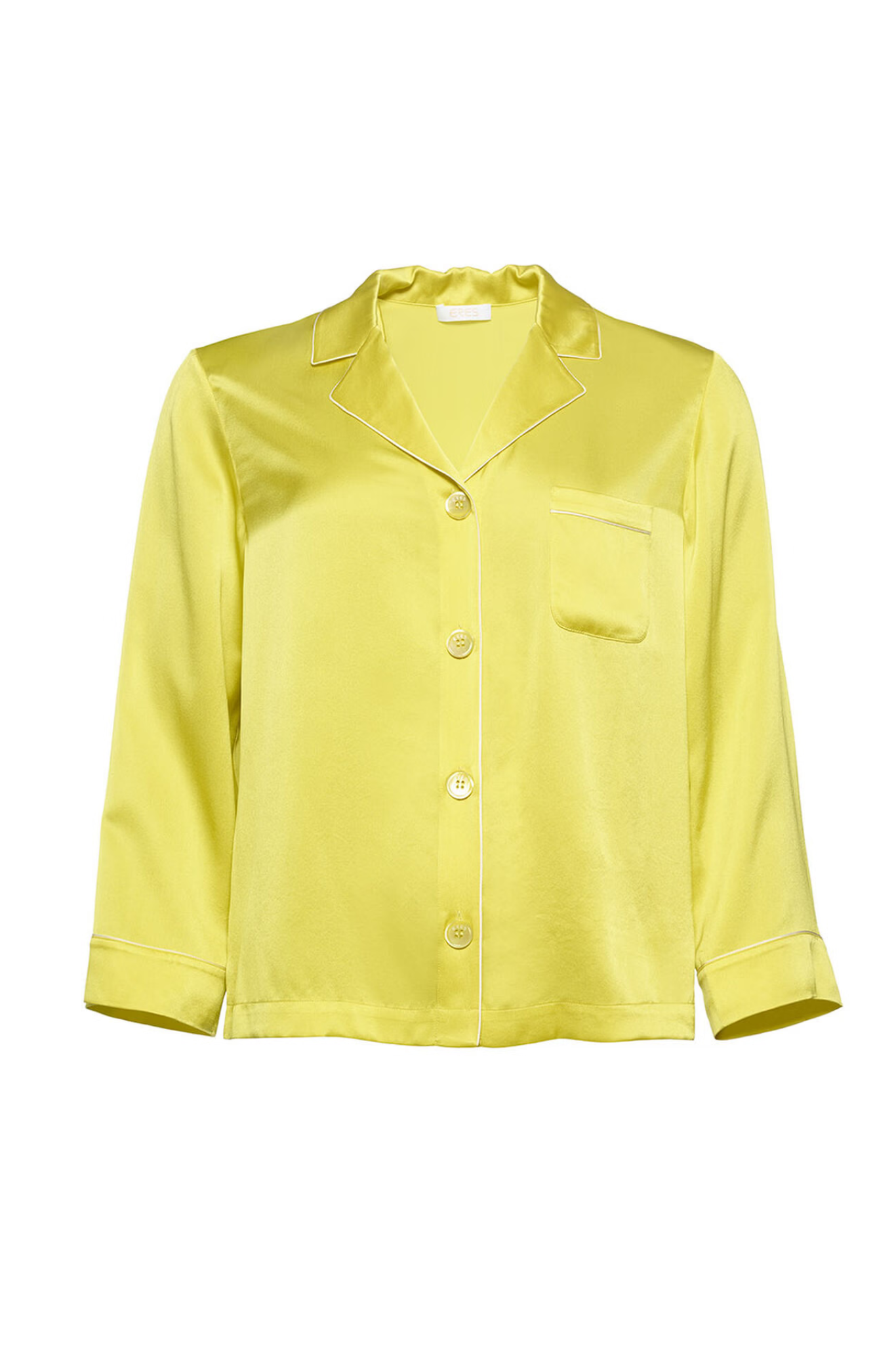 INFO With a masculine-feminine feel, the two-tone silk satin Convive shirt offers an elegant and sophisticated look day and night. Fluorescent, electric Acid yellow bordered by soft Vanilla beige. |