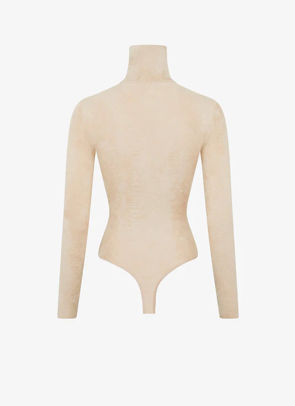 High Neck Bodysuit from Alaïa featuring long sleeves, seamless design, and knitted in an ultra-fine chenille yarn