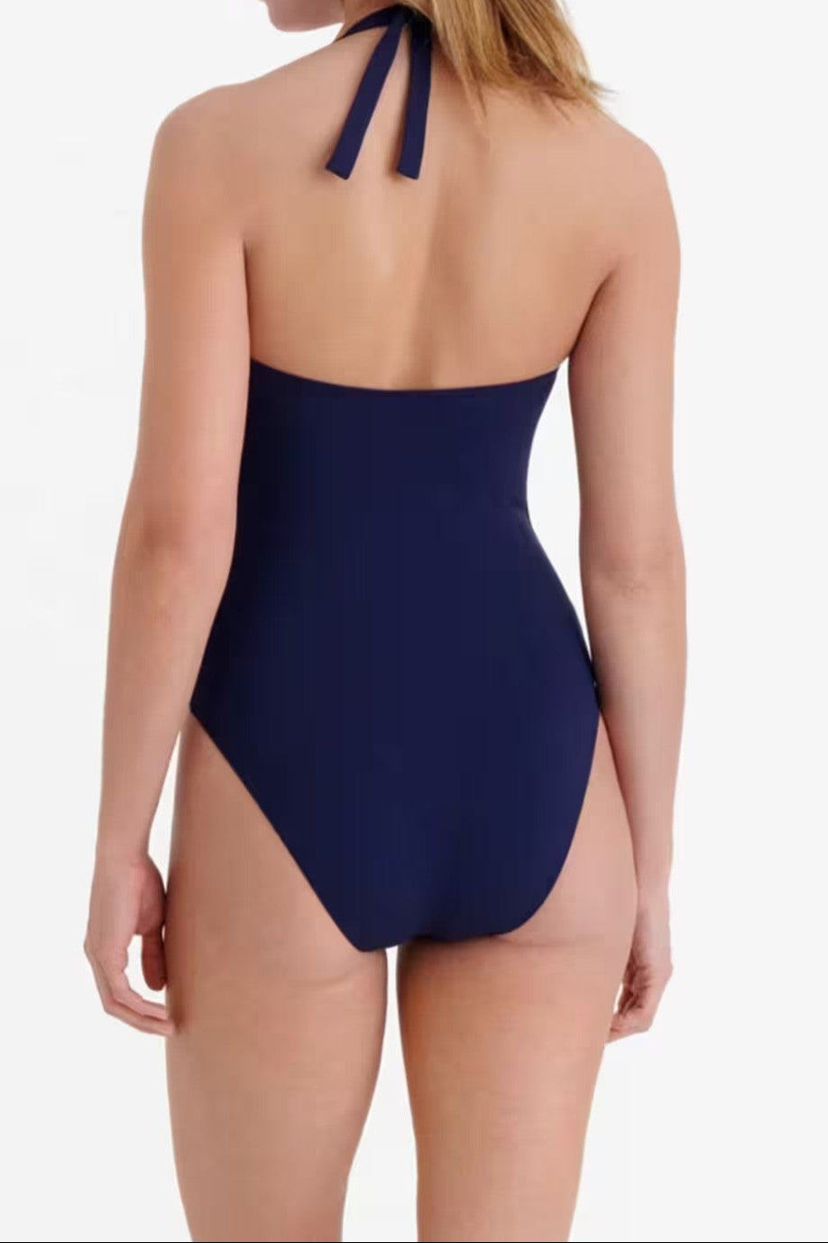 This sophisticated one-piece swimsuit with halter straps has a neckline equipped with a U-shaped link. Graphic and feminine, it adapts to all body shapes.