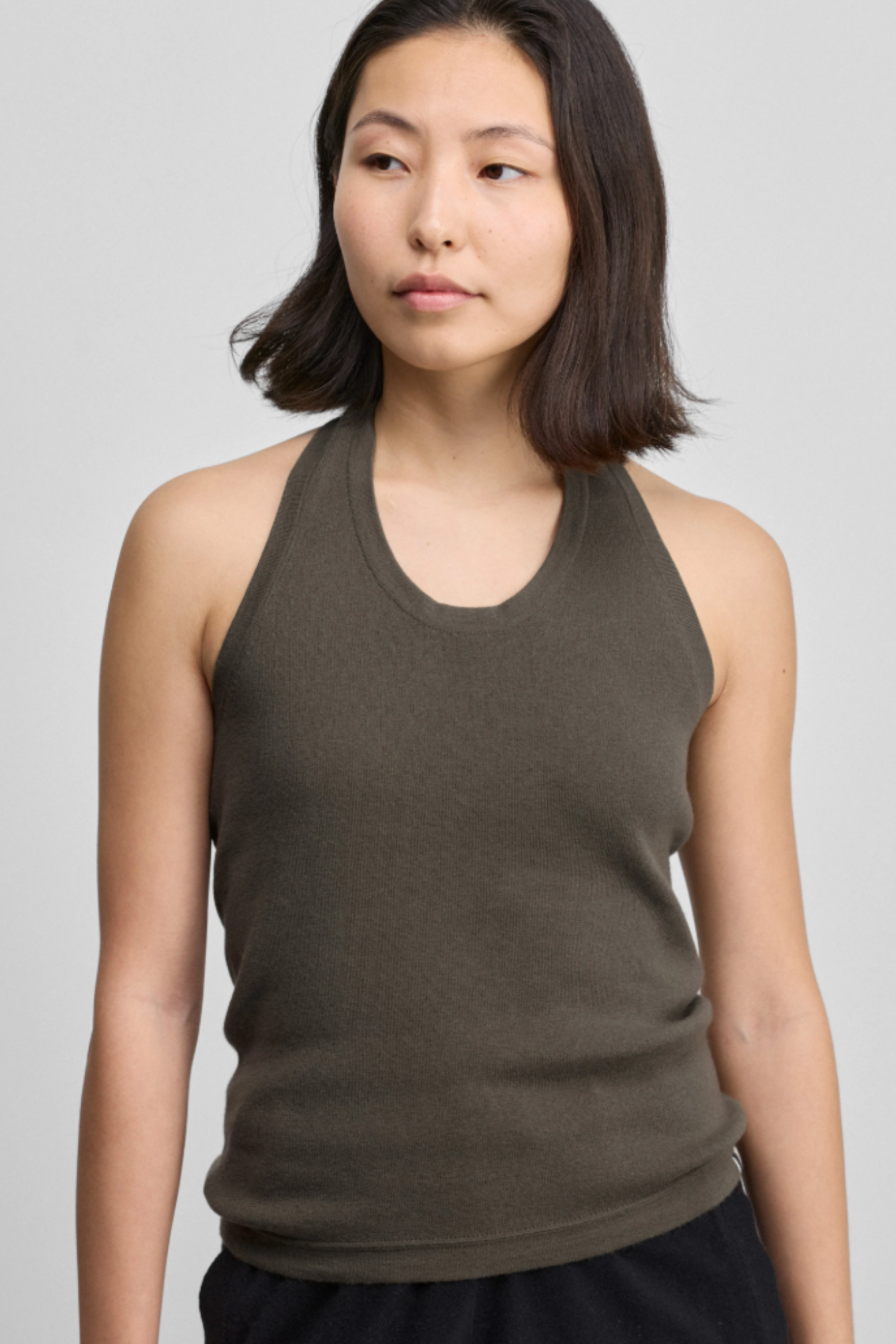 the jerry is a chic halter top crafted from our ultra-soft cotton-cashmere mini rib. its stretchy ribbed knit offers a flattering, figure-hugging fit, making it the perfect lightweight essential for summer days. our cotton-cashmere series fuses our regular cashmere (30%) with the crisp structure and clean breathability of cotton (70%). COMPOSITION 70% cotton 30% cashmere |