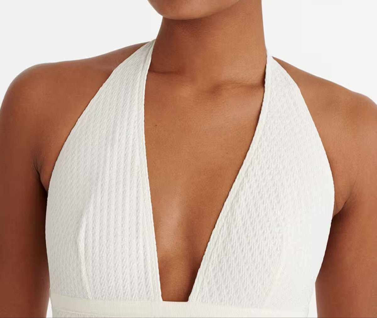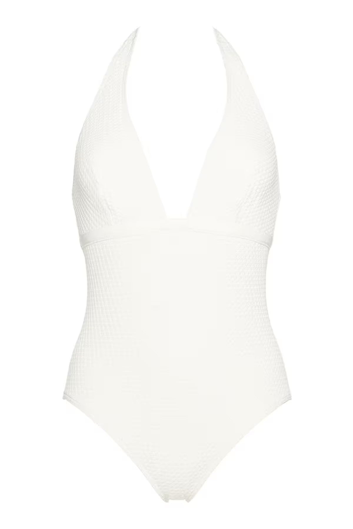 Graphic and feminine, the jacquard Paillette swimsuit features an elegant V-shaped neckline as well as a grosgrain underbust band for a retro feel and extra support.