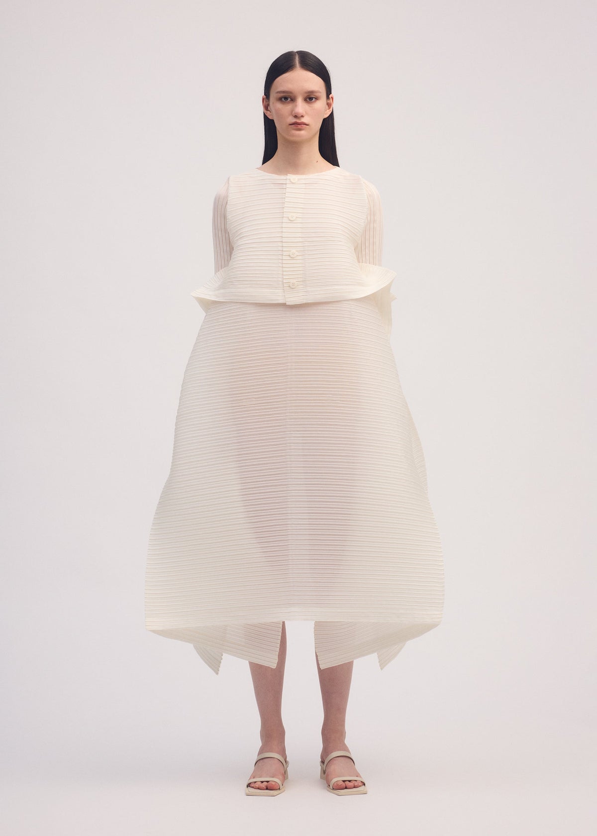Issey Miyake Paneled Pleats Cardigan in White