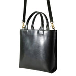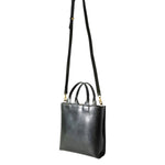 It is a shoulder bag with a handle, so it can be carried in a variety of ways with different styling. The shoulder strap can be removed for a sleeker look.