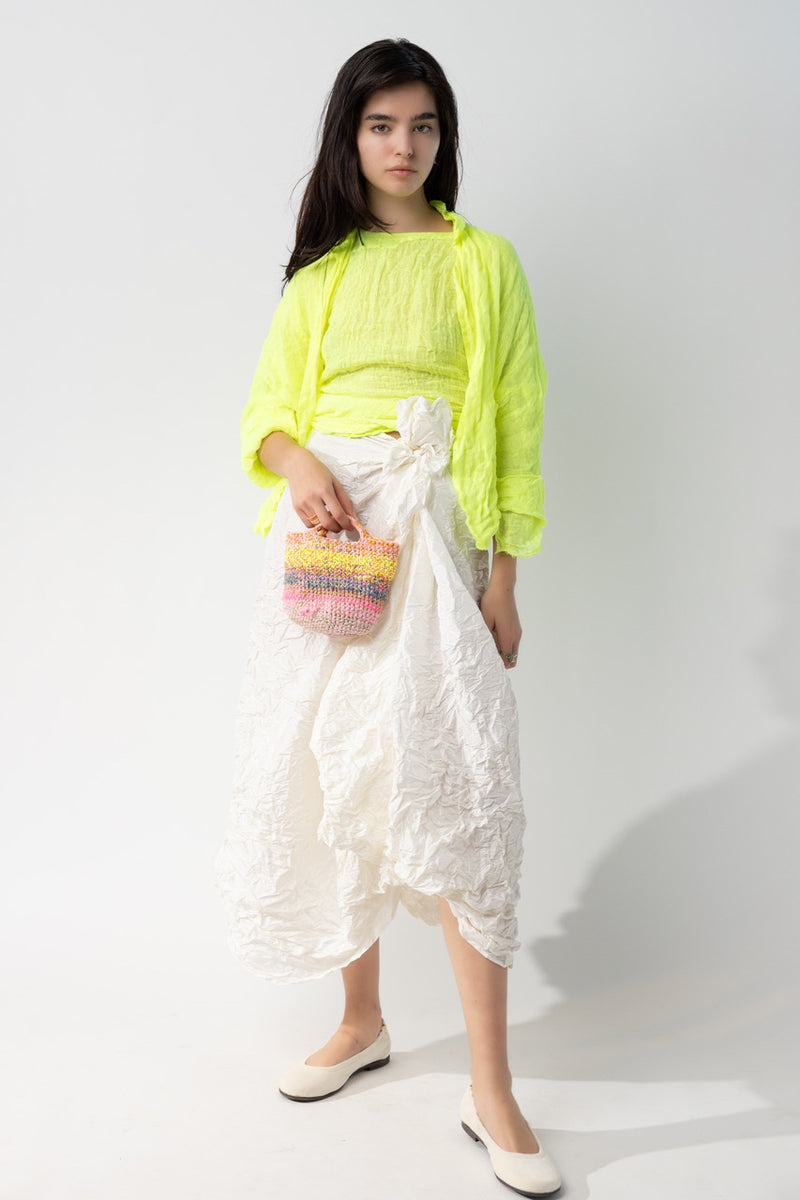 At A’maree’s, we celebrate Daniela Gregis for her soulful, artful approach to everyday dressing. From her studio in Bergamo, Italy, she crafts garments using hand-painted fabrics, natural dyes, and traditional techniques. Her voluminous, effortless silhouettes honor women of all ages and shapes, blending rustic charm with modern elegance. With nothing wasted, every scrap becomes part of the story—transformed into accessories or homeware. Gregis’ work reflects our shared love of beauty, intention, and clothing meant to be lived in.