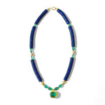 18" Lapis Heshi Necklace with Emerald Cabachon Pendant and Emerald, 22K Yellow Gold and Diamond Football Nuggets