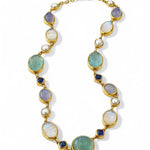 INFO 22K Yellow Gold 18.5" Linked Necklace With Rainbow Moonstone, Sapphire, Chalcedony, and Pearls |