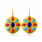 INFO 22K Yellow Sheet Gold Disc Earrings with Lapis, Coral, and Turquoise |