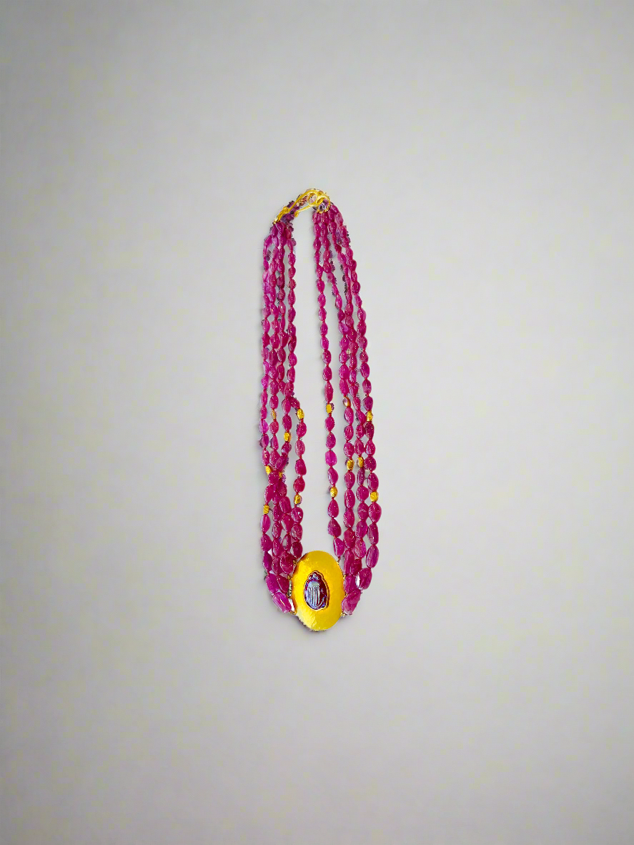 42" Ruby Spinel Necklace with 4 Yellow Gold Rice Nuggets