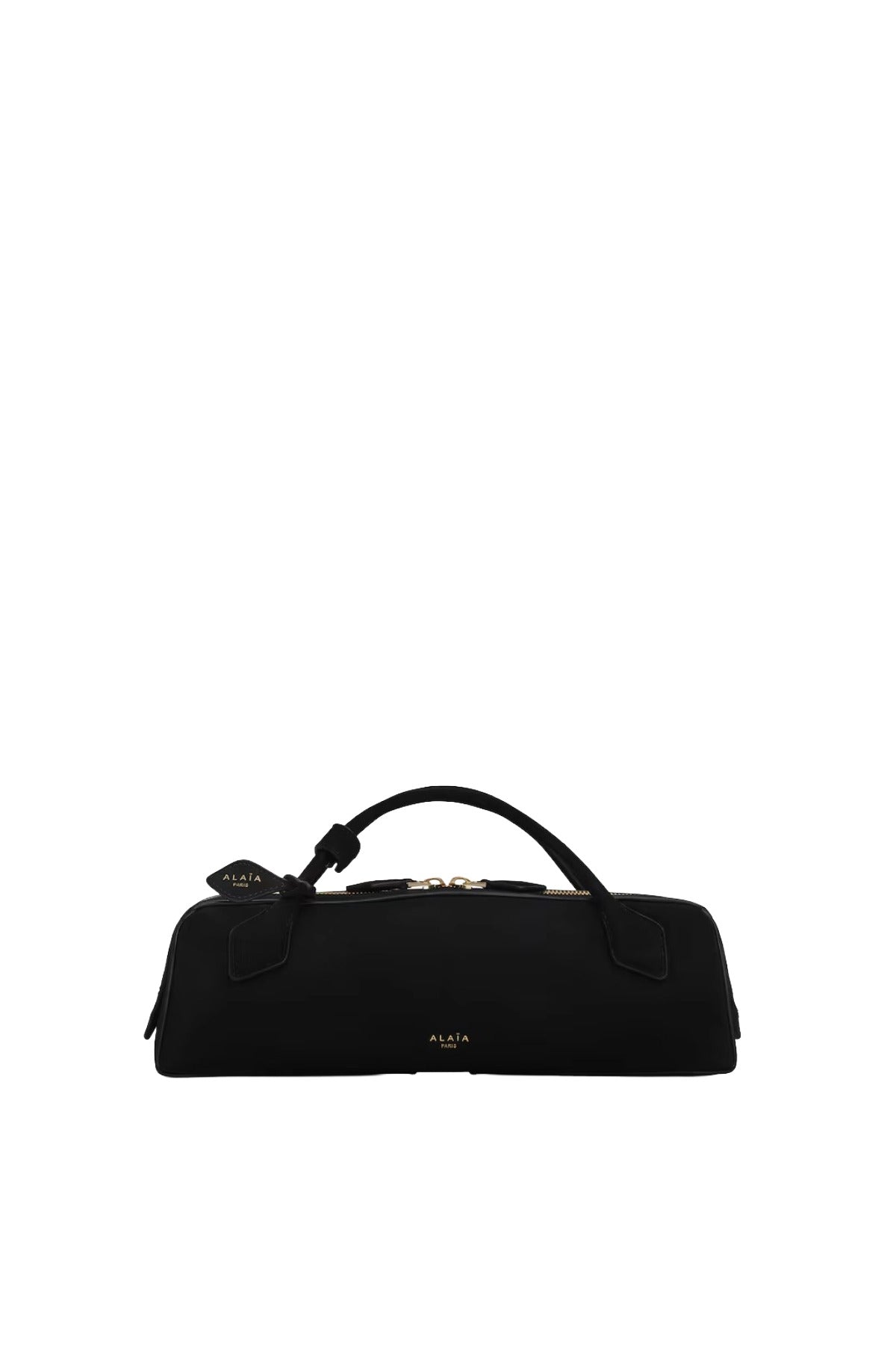 | The clutch version of the emblematic Le Teckel bag Elongated shape, tubular short handles with decorative ties, double zip closure, small removable mirror on the inside pocket Hand carry Suede goatskin leather Dimensions (cm) : L 31 X H 10 X D 7 |