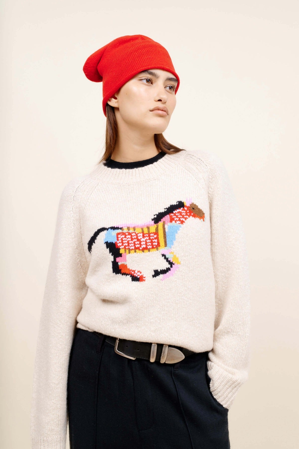 The Elder Statesman Glacier Horse Crew Sweater is part of the Winter 25 Collection. Heavyweight crewneck in cashmere with seasonal horse intarsia.