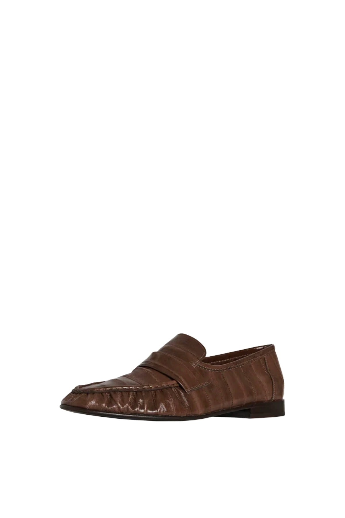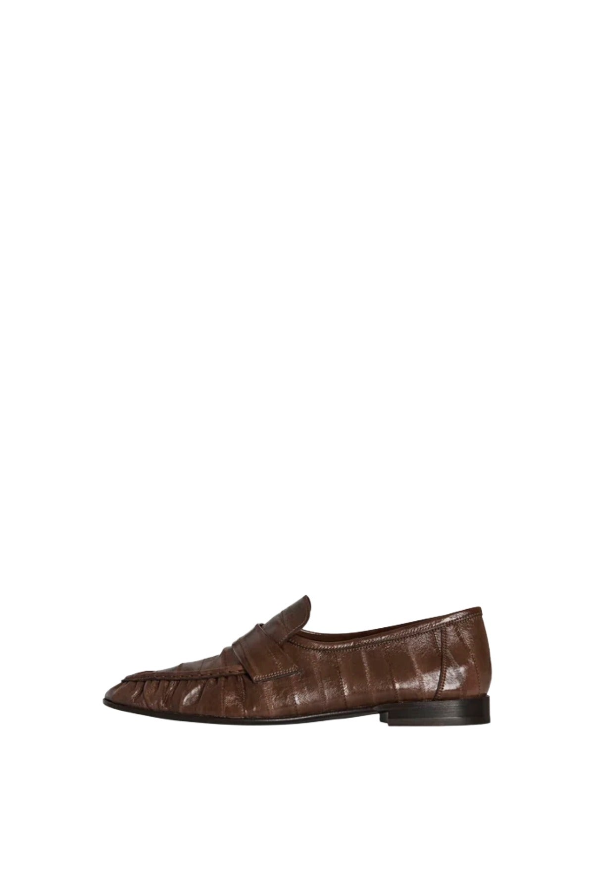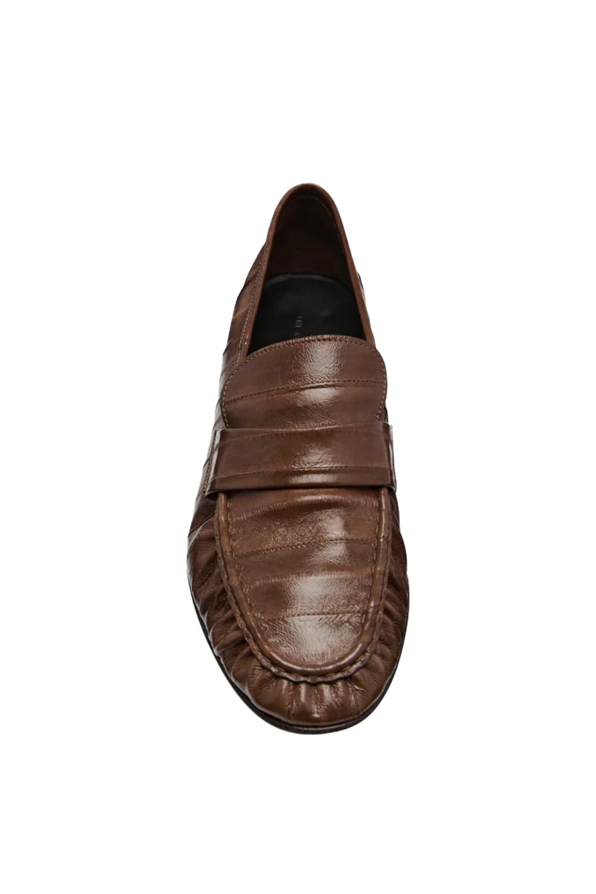 The Row Soft Loafer in Eel is part of the Winter 25 Collection. Artisanally-crafted loafer in paneled eel-skin leather with natural pleating effect and hand-painted leather sole.