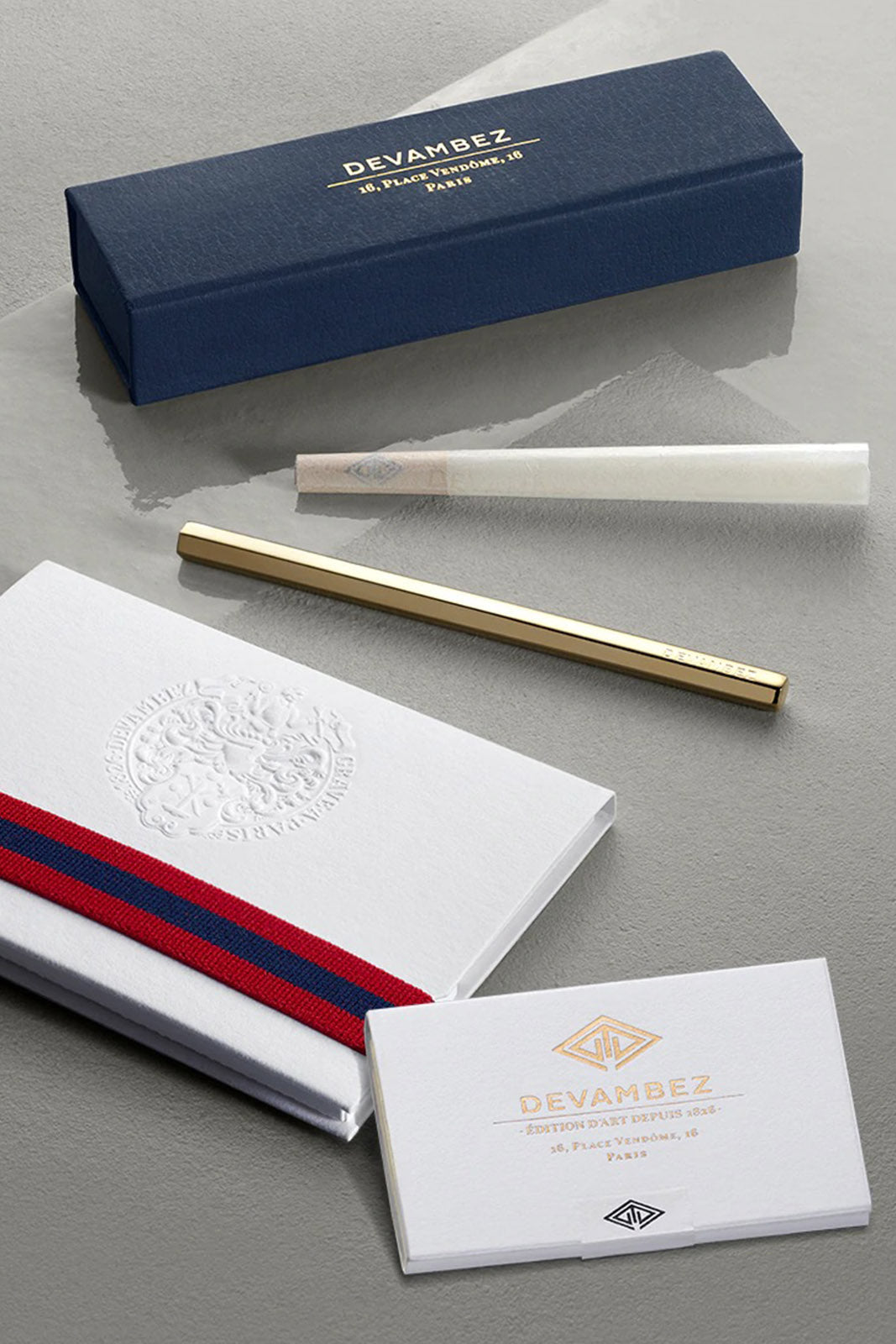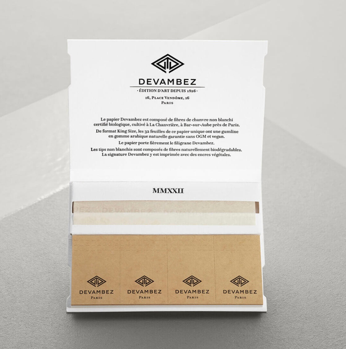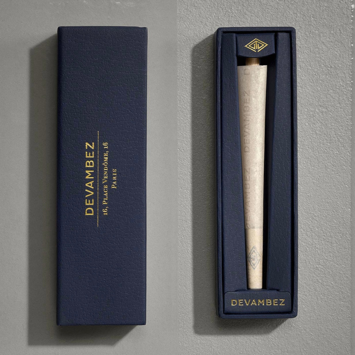 For immaculate burn and taste, all of our rolling paper with the distinctive Devambez watermark, is ultra-thin and handcrafted in small batches, made from organic hemp grown in the mythic Champagne region of France. The box itself is a feat of construction, handmade by Devambez’s private box maker, Monsieur François, in his Parisian atelier, and stately and solid so as to be kept as a keepsake. Keep it at home to always be ready for guests or deliver it as a gift that your friends will never forget. |