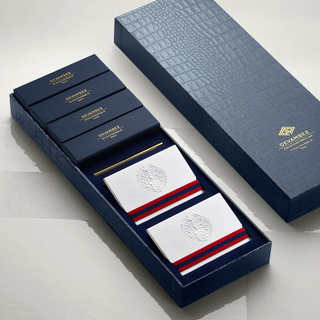SPECIFICATIONS One case made of crocodile-texture embossed paper contains: