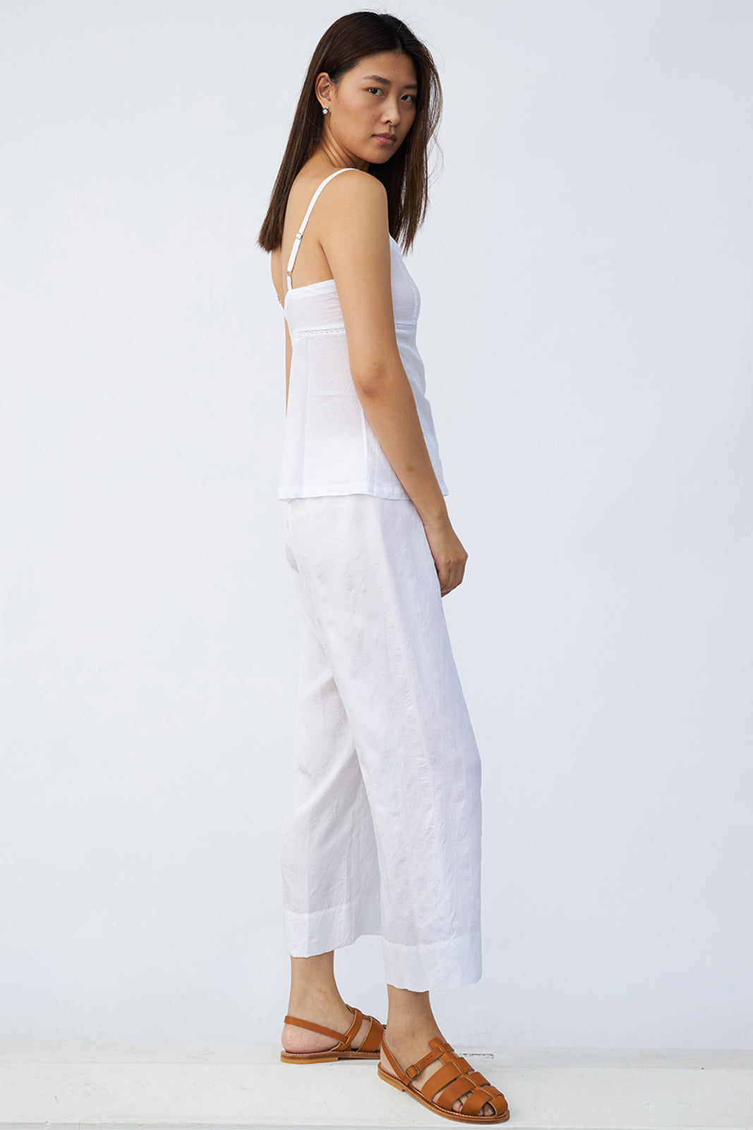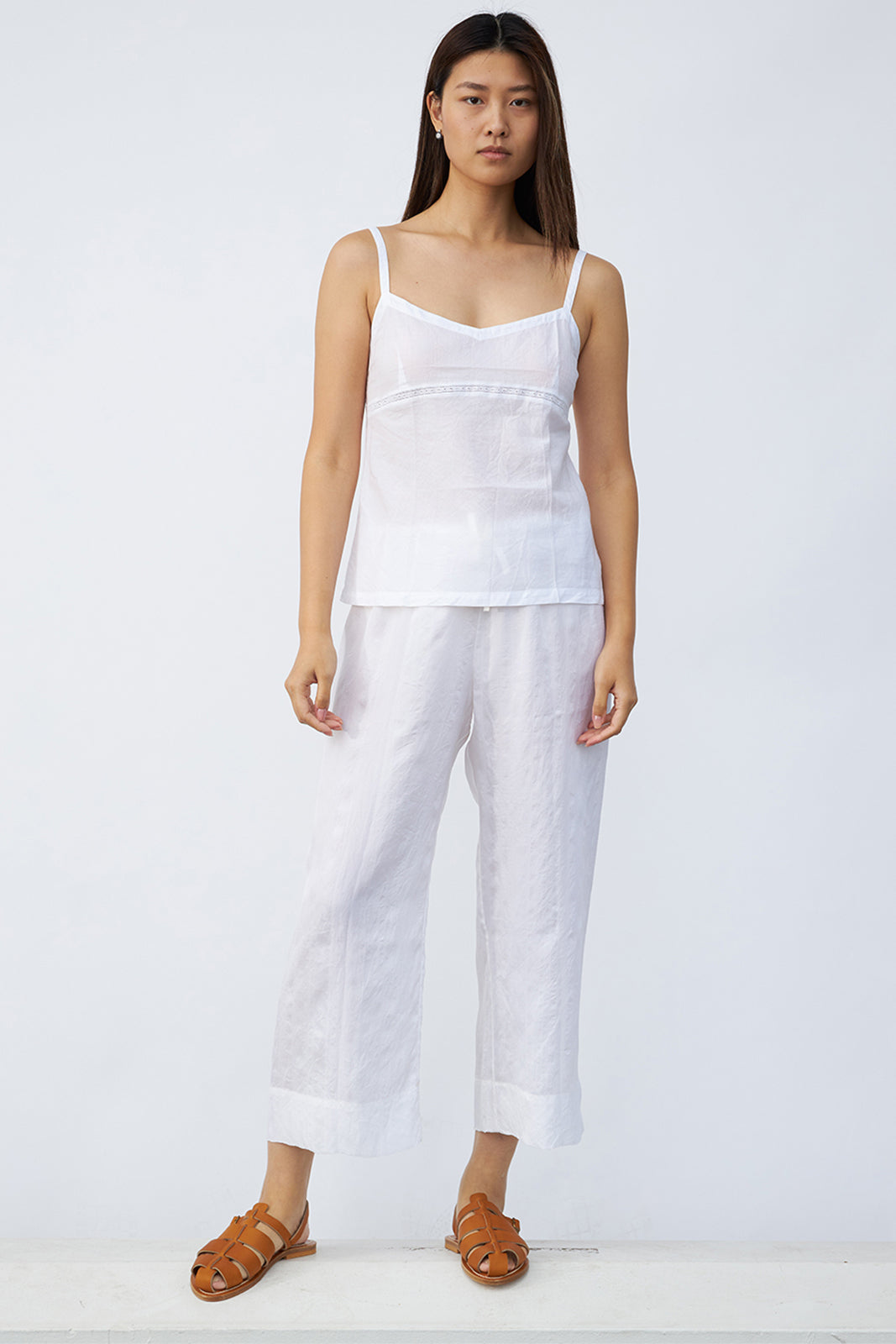 Dosa Kymber Tank is in lightweight cotton cloth with lace detail under bust and adjustable straps.