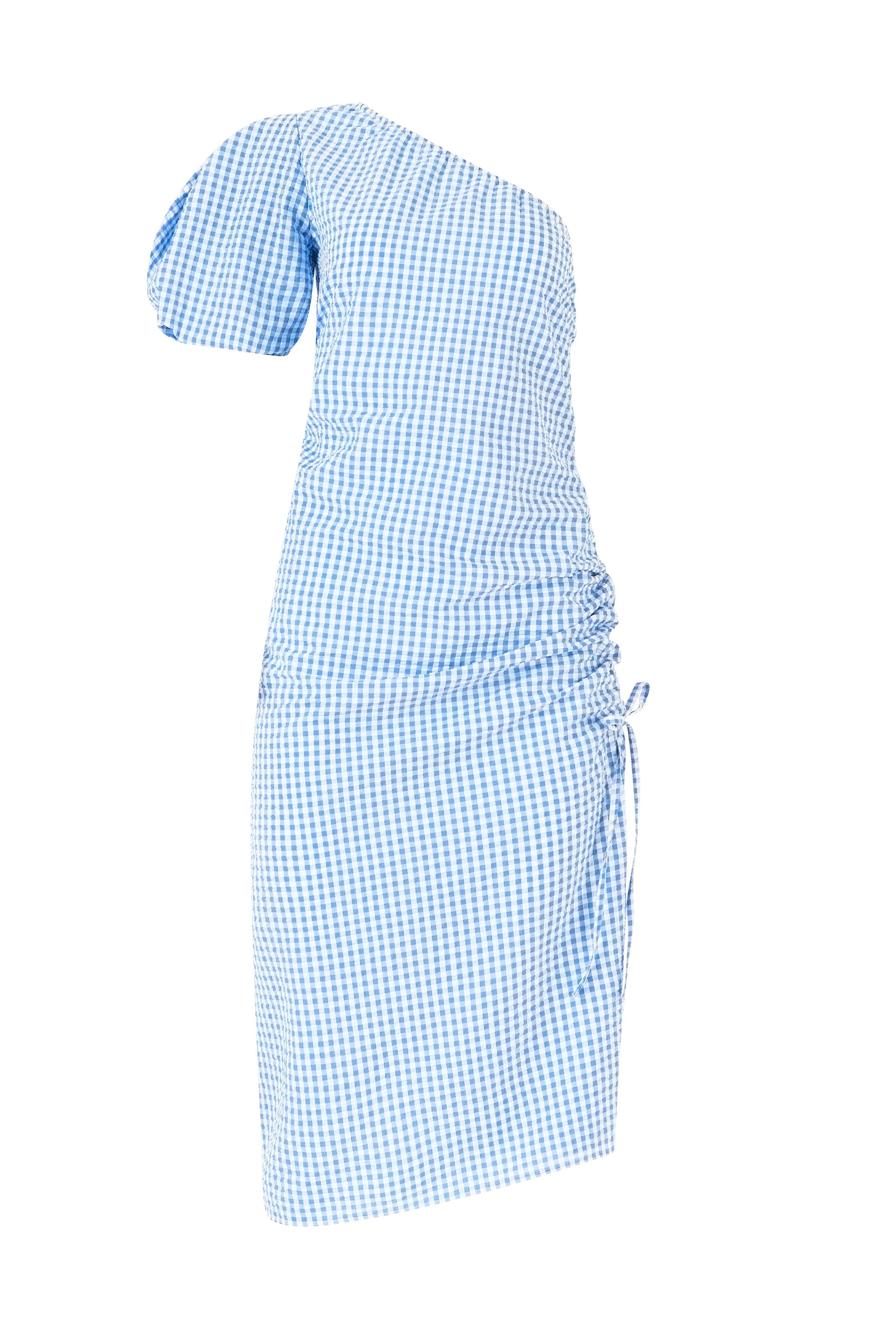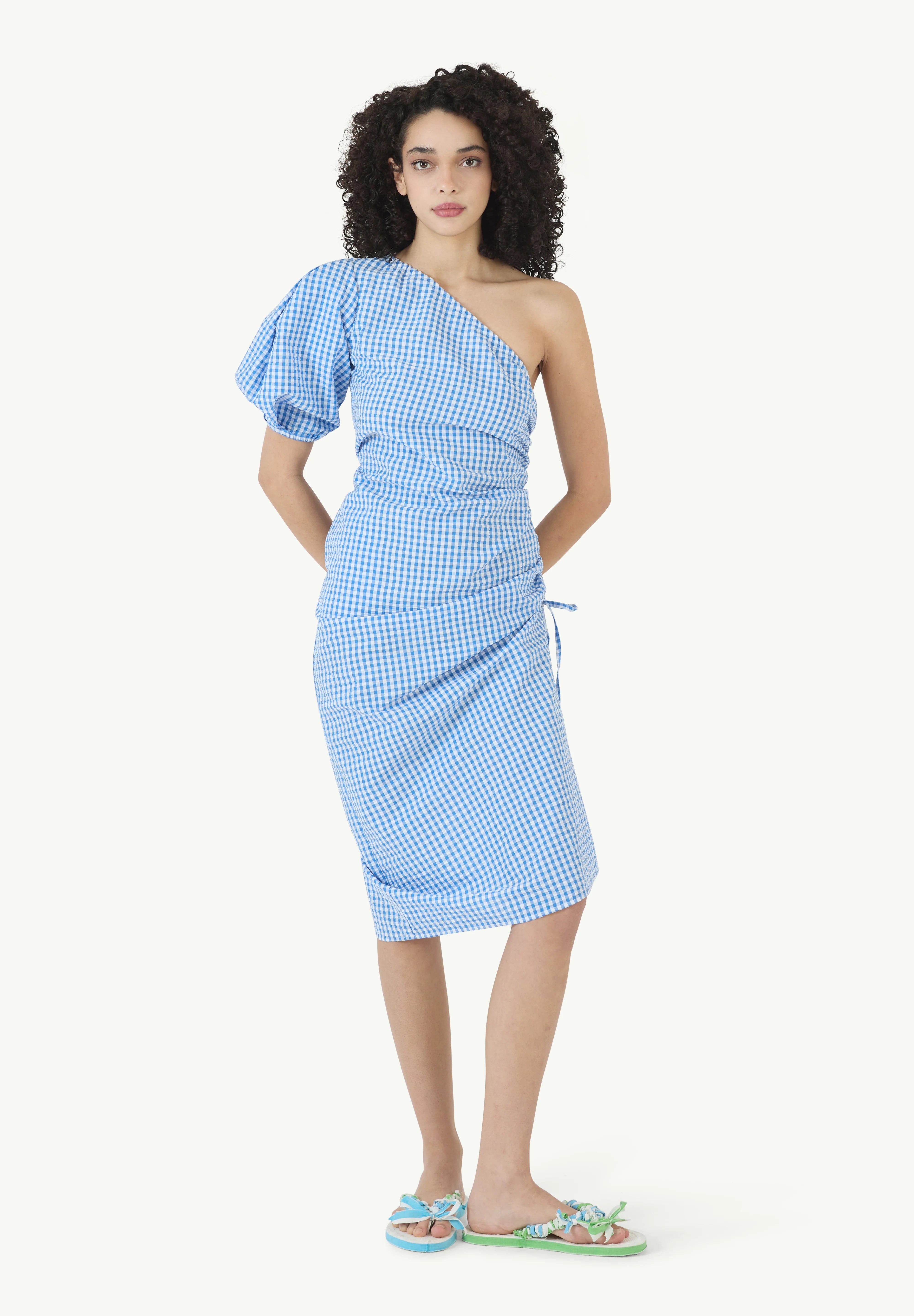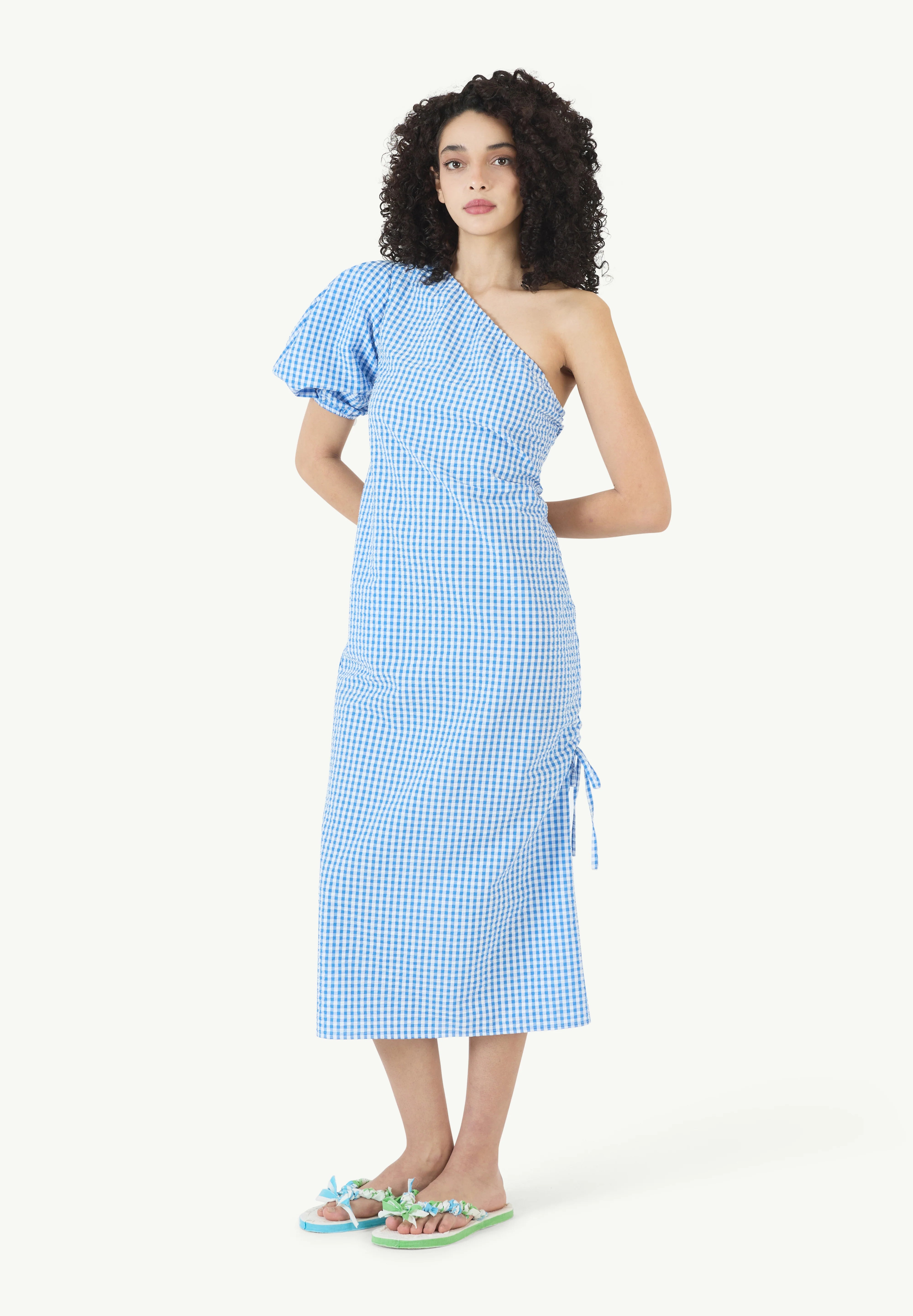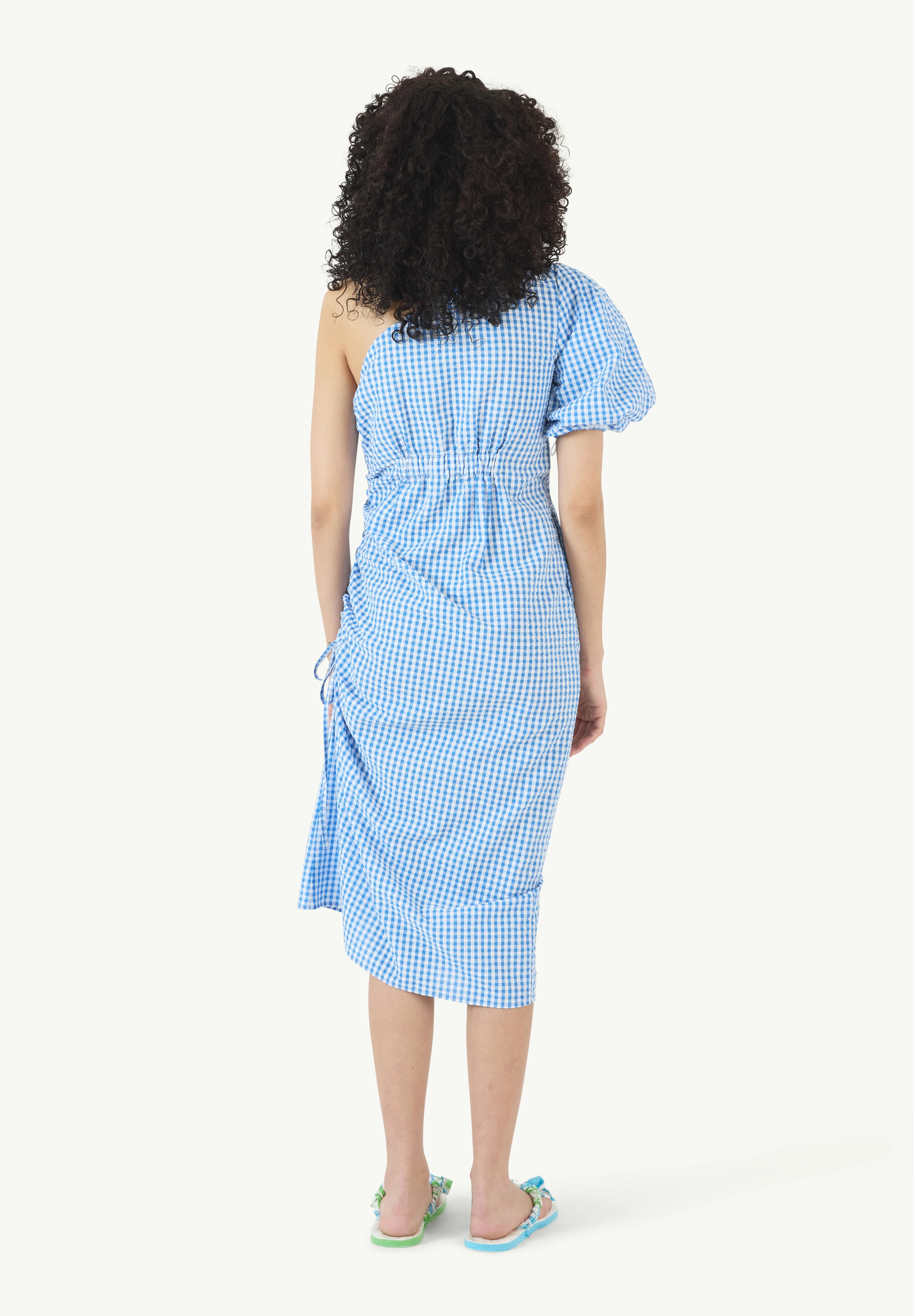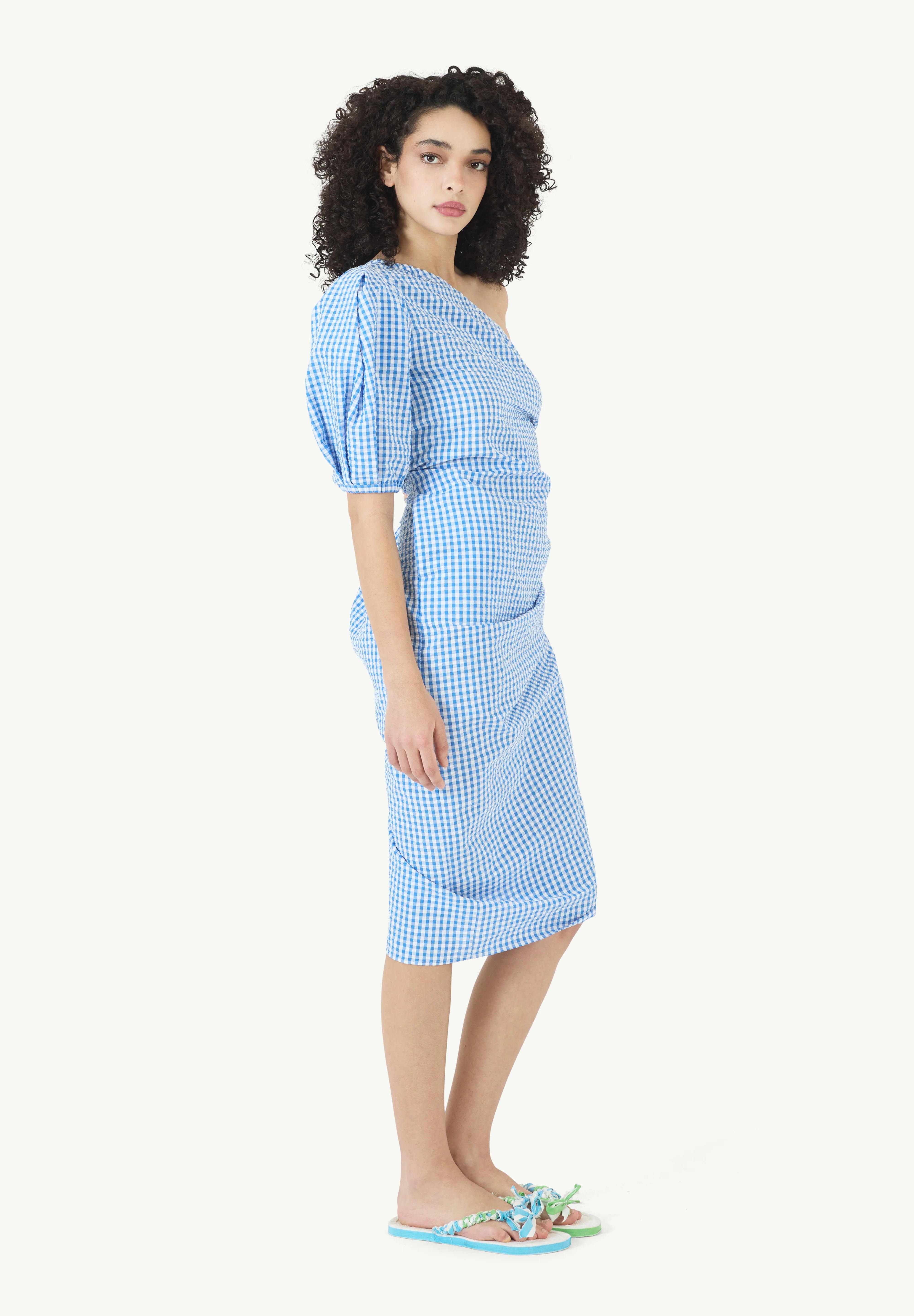 One Shoulder Puff Sleeve Dress in Seersucker Gingham |