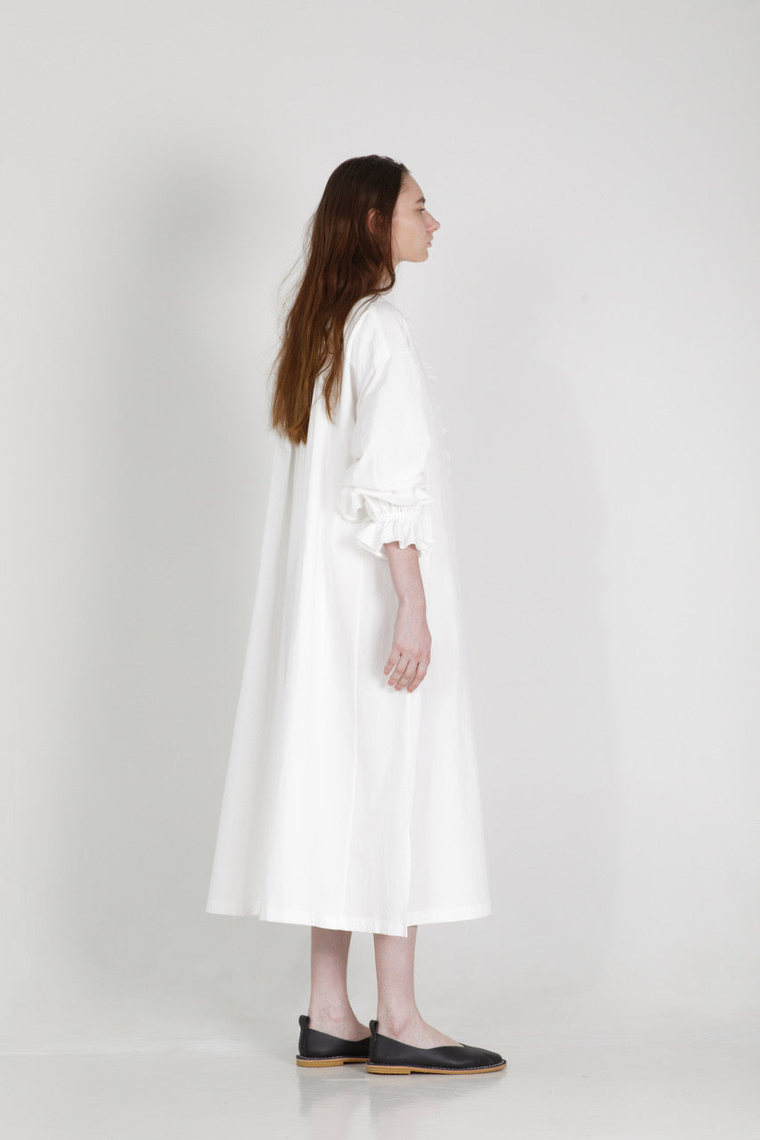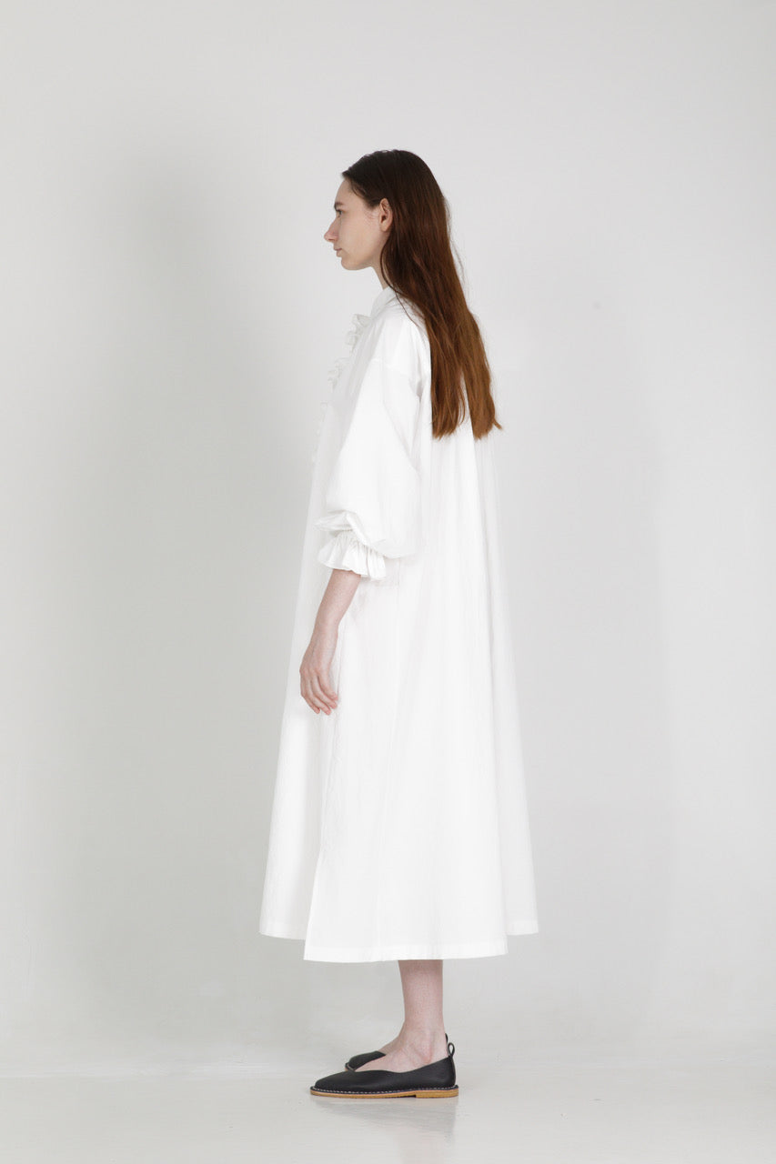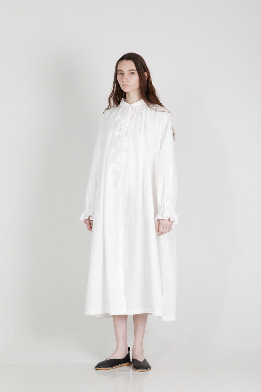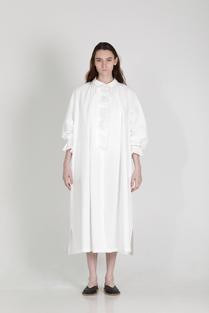 Long shirt-dress with ruffled button placket. Material : Opaque Cotton Poplin Composition : 100% Cotton Country of origin : Made in France |