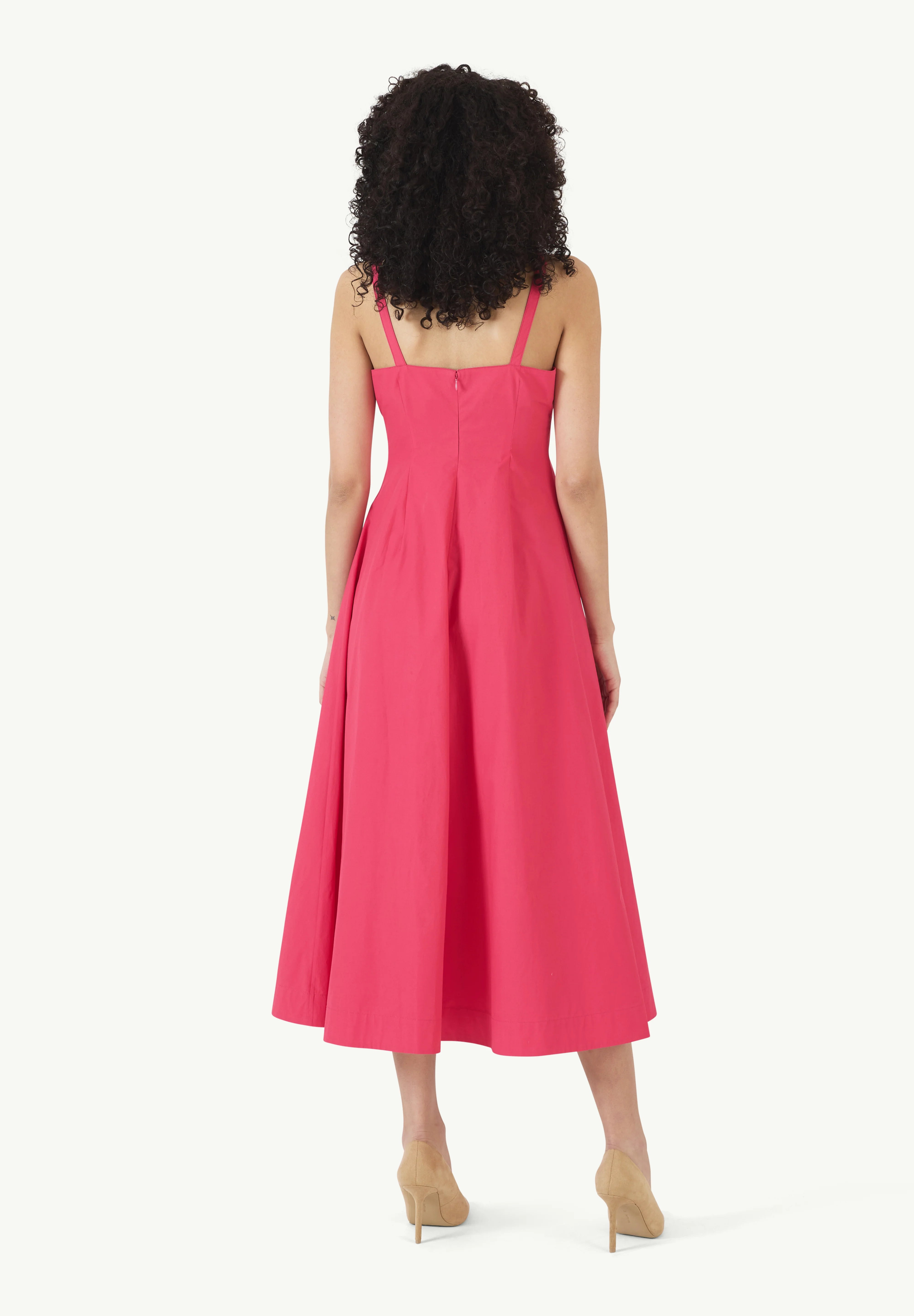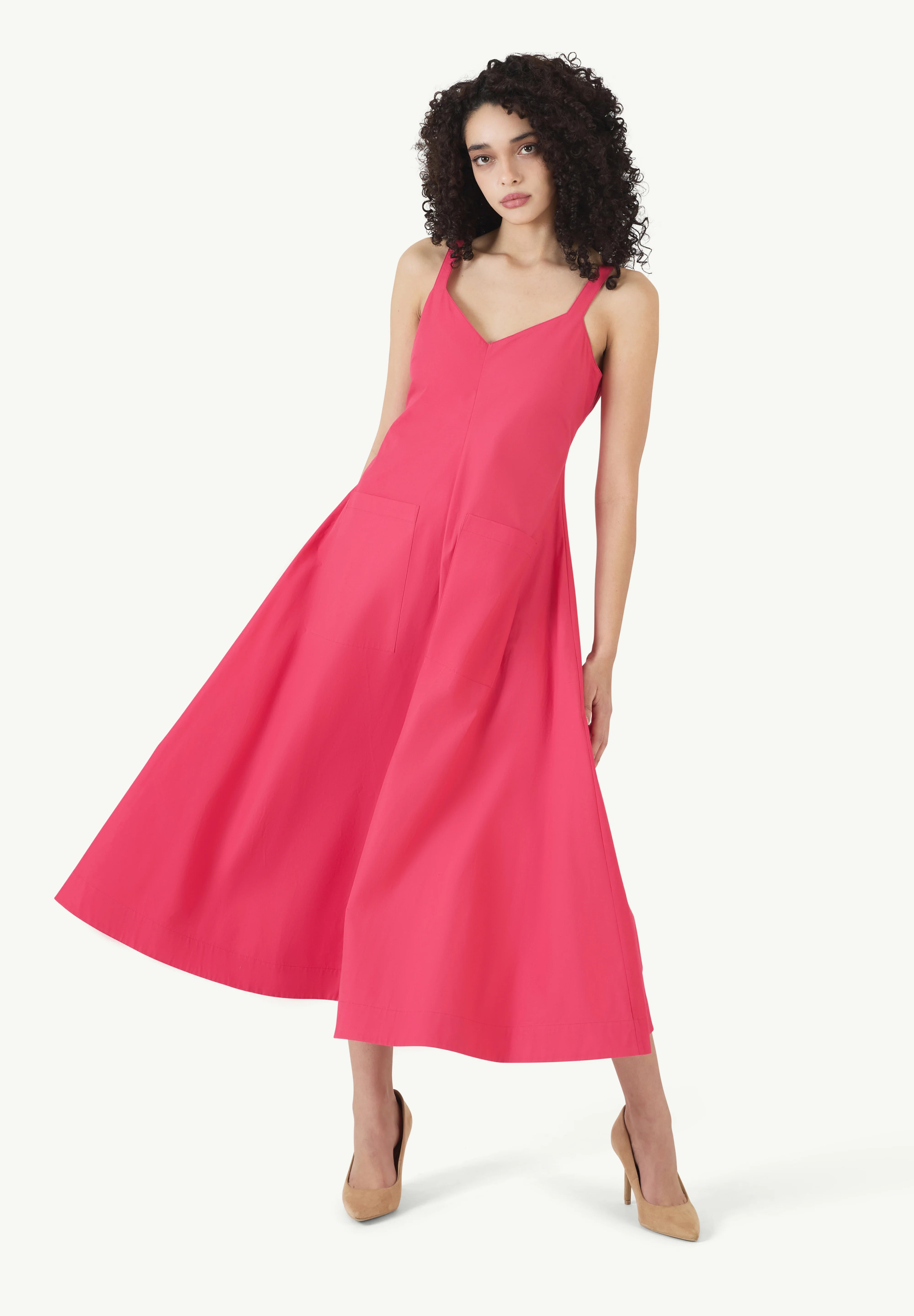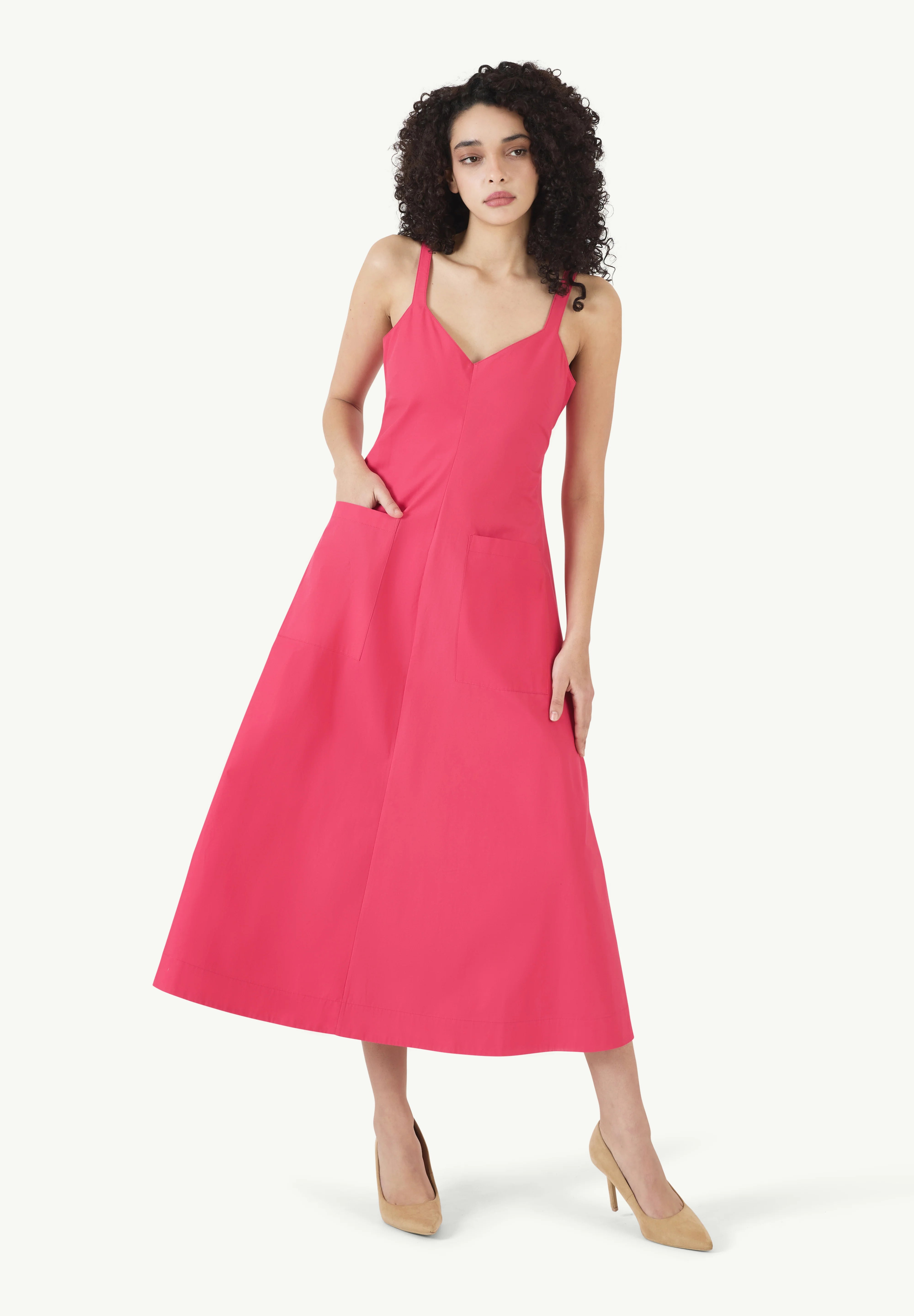 INFO The Pocktail Dress in Cotton Poplin in Magenta is a vibrant, effortlessly chic piece with a flattering A-line silhouette. Its structured yet lightweight fabric makes it perfect for both casual outings and dressed-up occasions. Plus, the pockets add a practical touch! Pair it with statement sandals or heels for a polished look, and accessorize with bold earrings to enhance its playful elegance. |