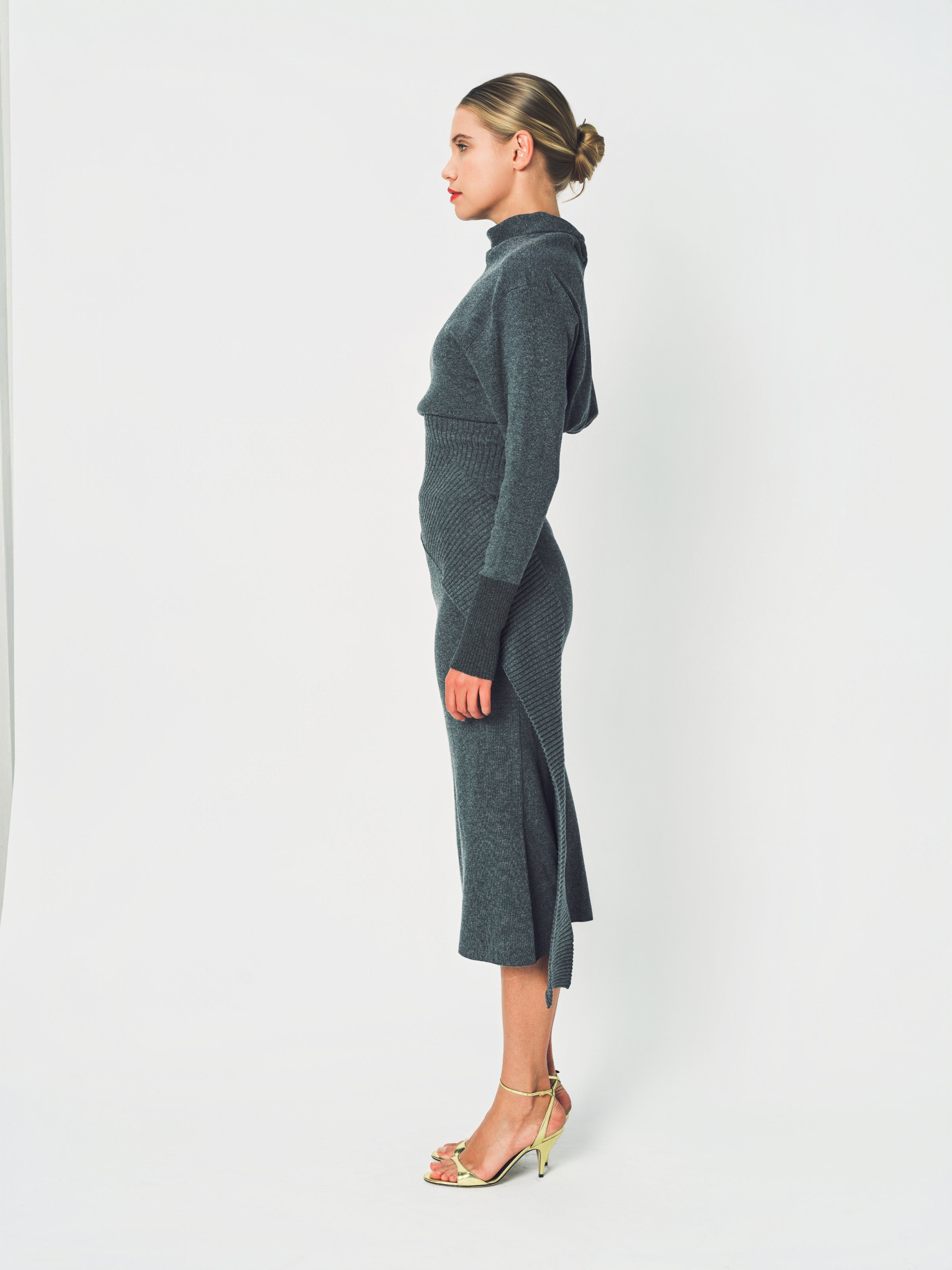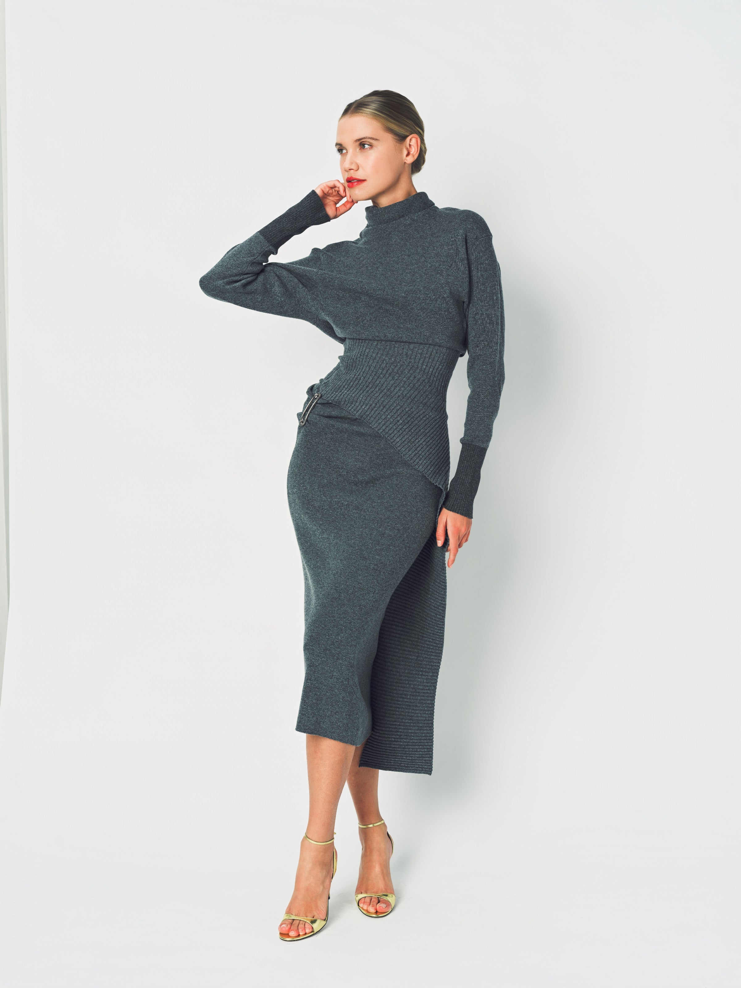 Lanvin Draped Midi Dress in Wool and Cashmere