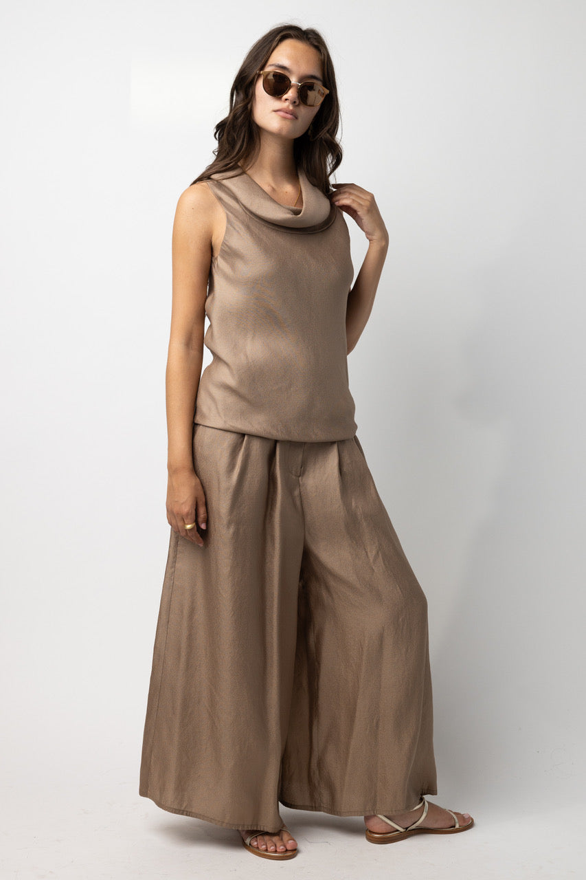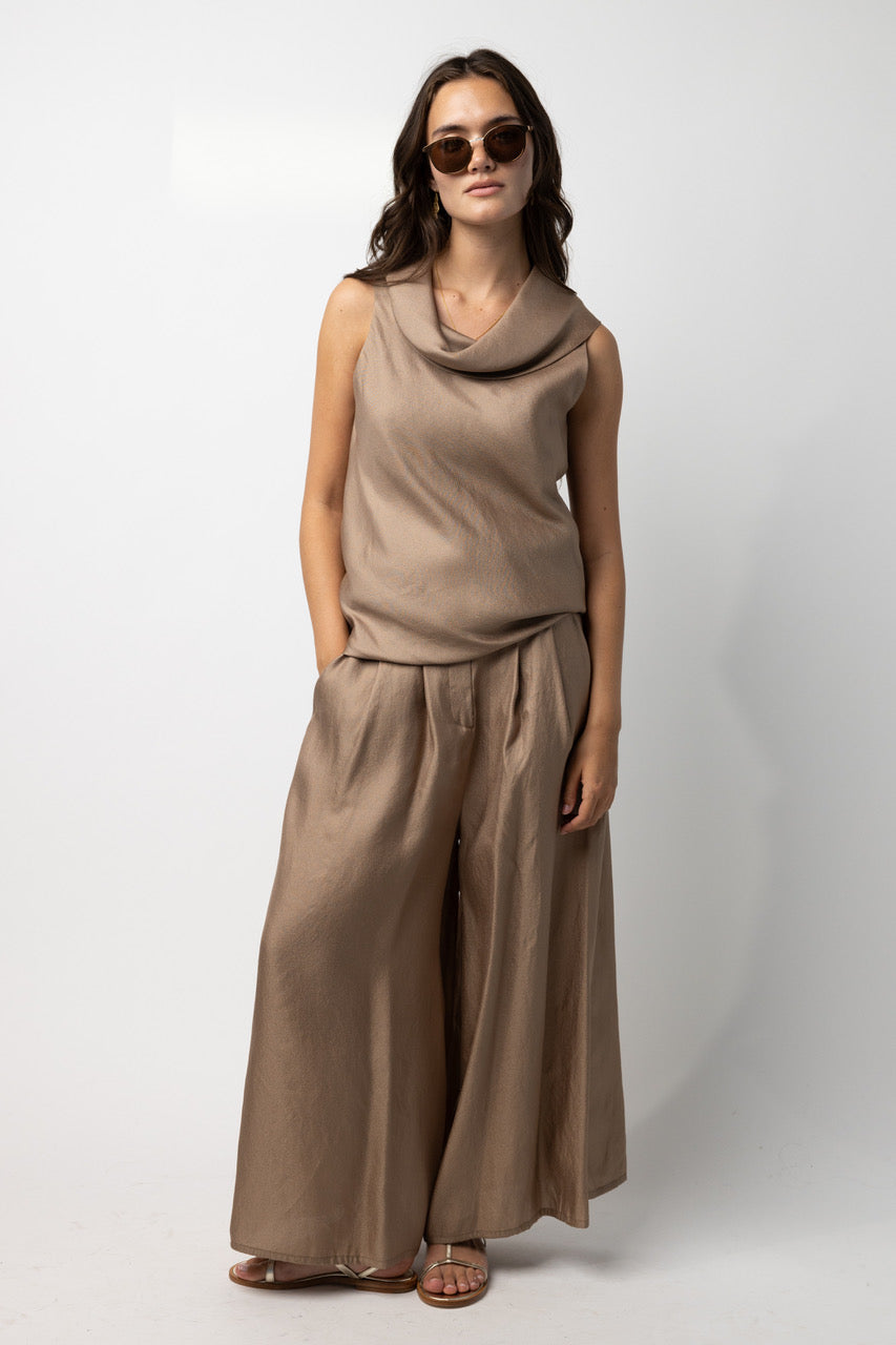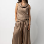 INFO Cowl Neck Sleeveless Topmade out of 2 layers of bias cut wrinkle effect silk. |