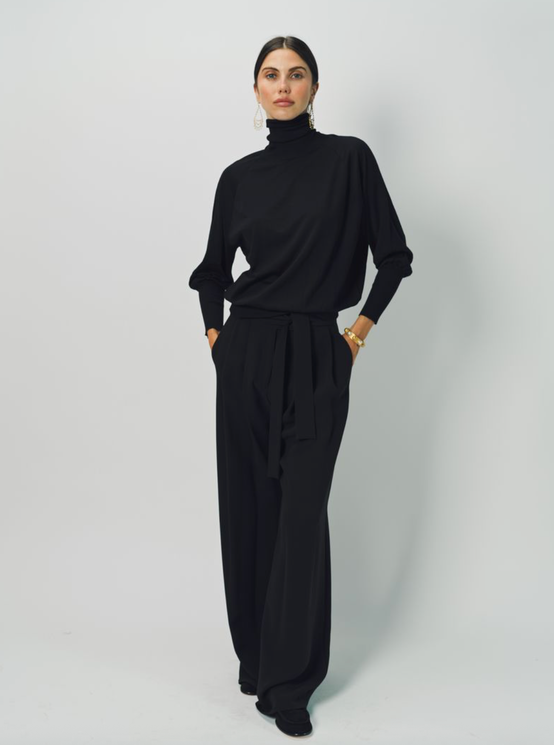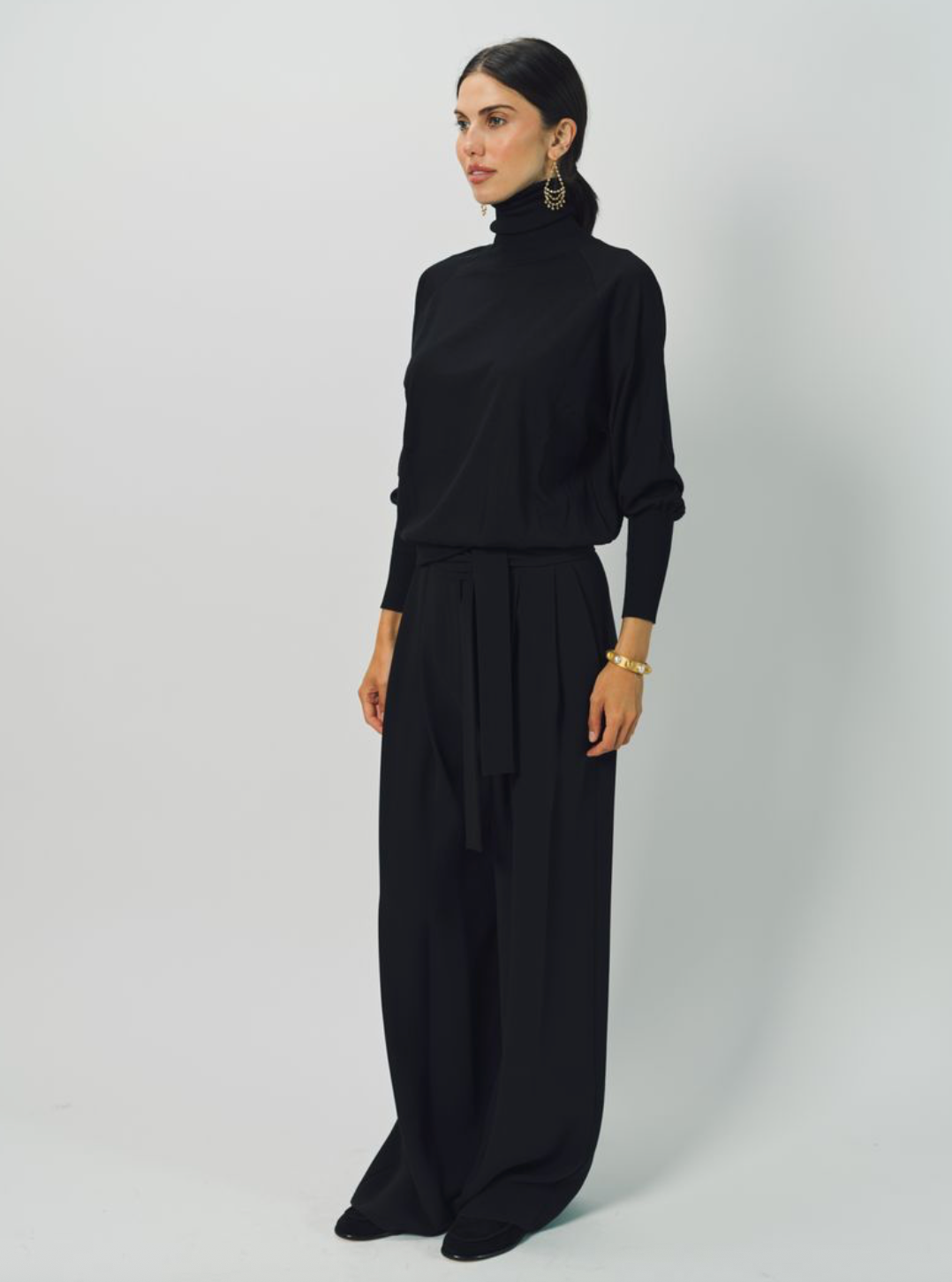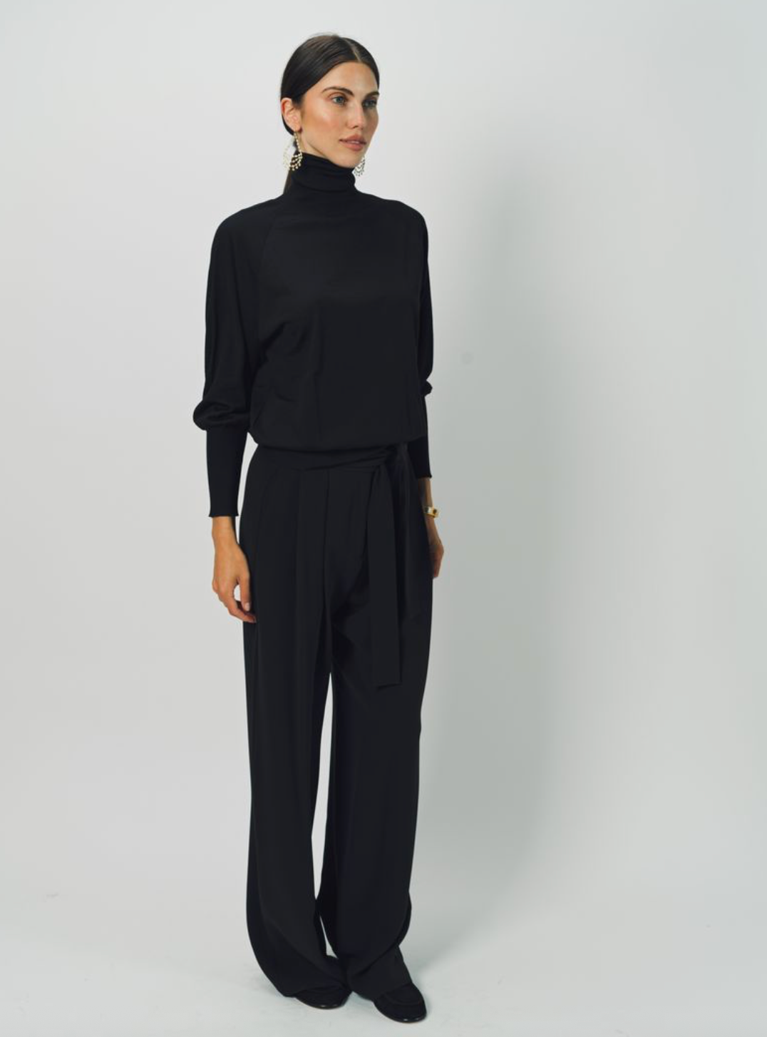 Dusan's Silk Wide Leg Pant with Belt are a relaxed, cropped wide leg pant with pleated middle, slide snap closure, built in belt and side seam pockets.