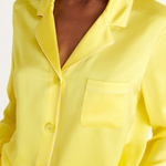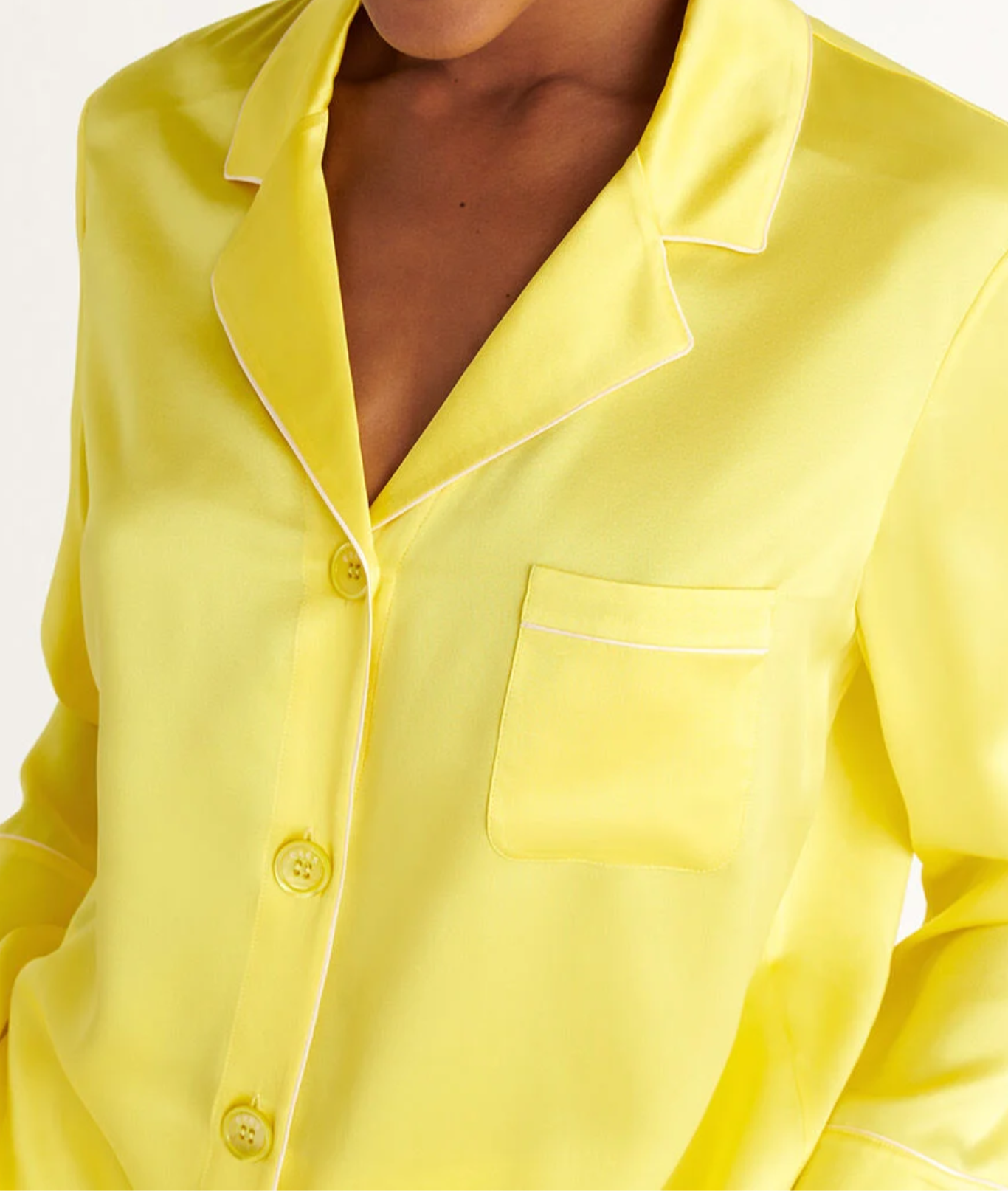 INFO With a masculine-feminine feel, the two-tone silk satin Convive shirt offers an elegant and sophisticated look day and night. Fluorescent, electric Acid yellow bordered by soft Vanilla beige. |