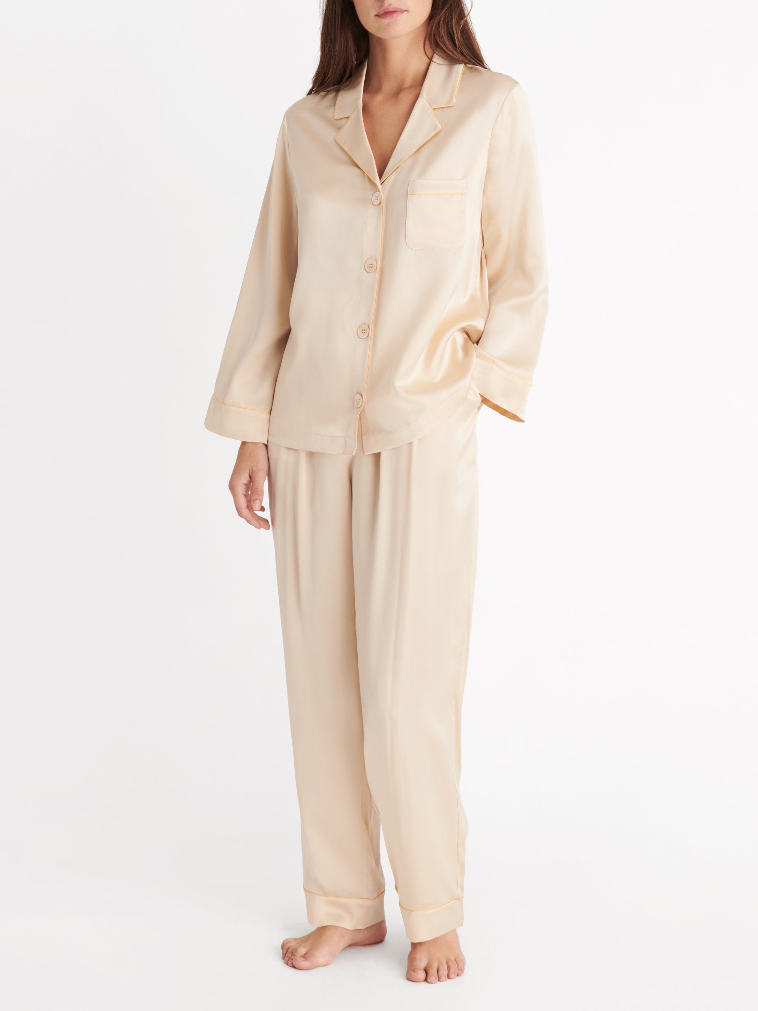 • Chic and timeless, the Mondain silk satin trousers feature contrasting piping.