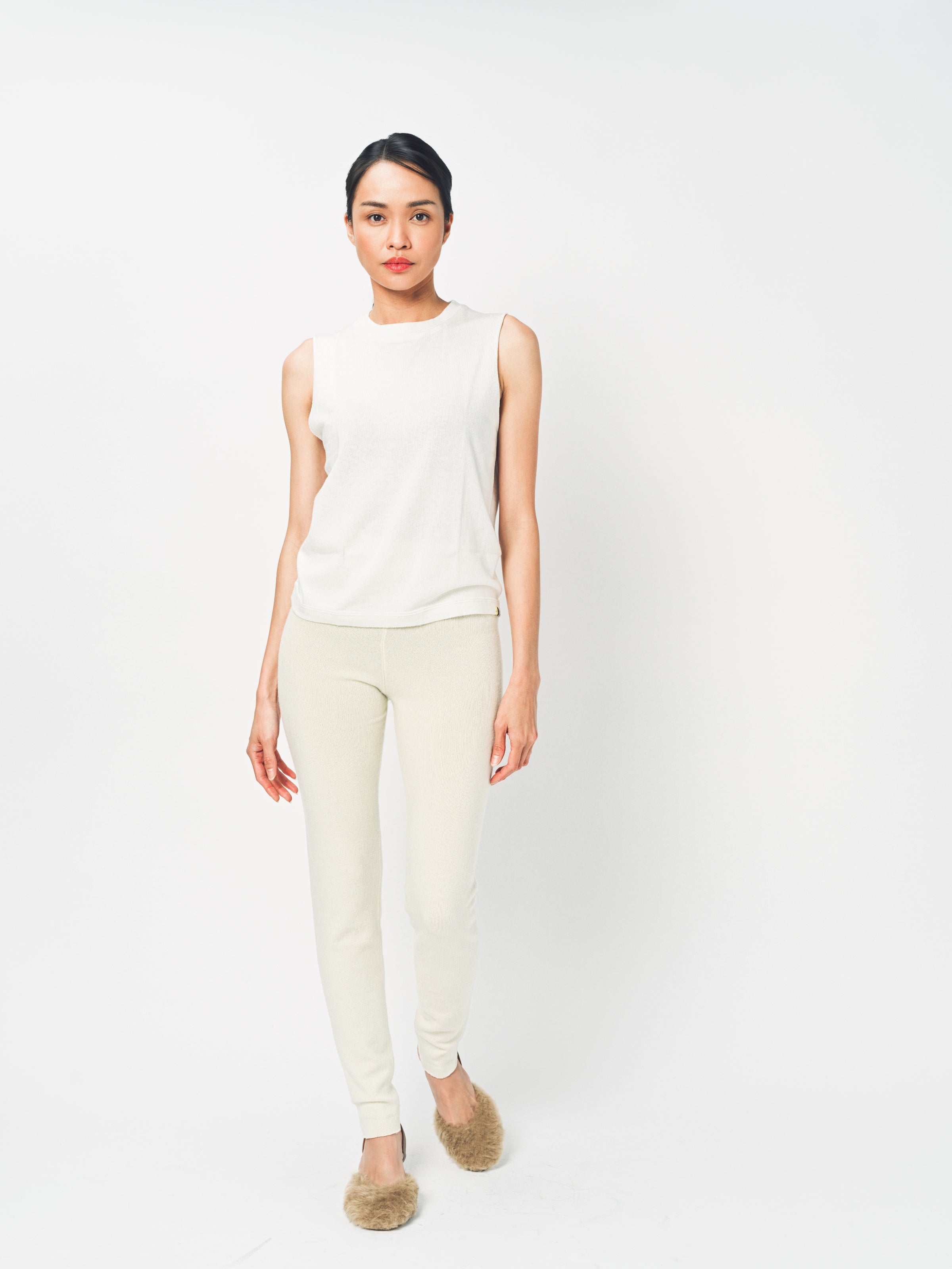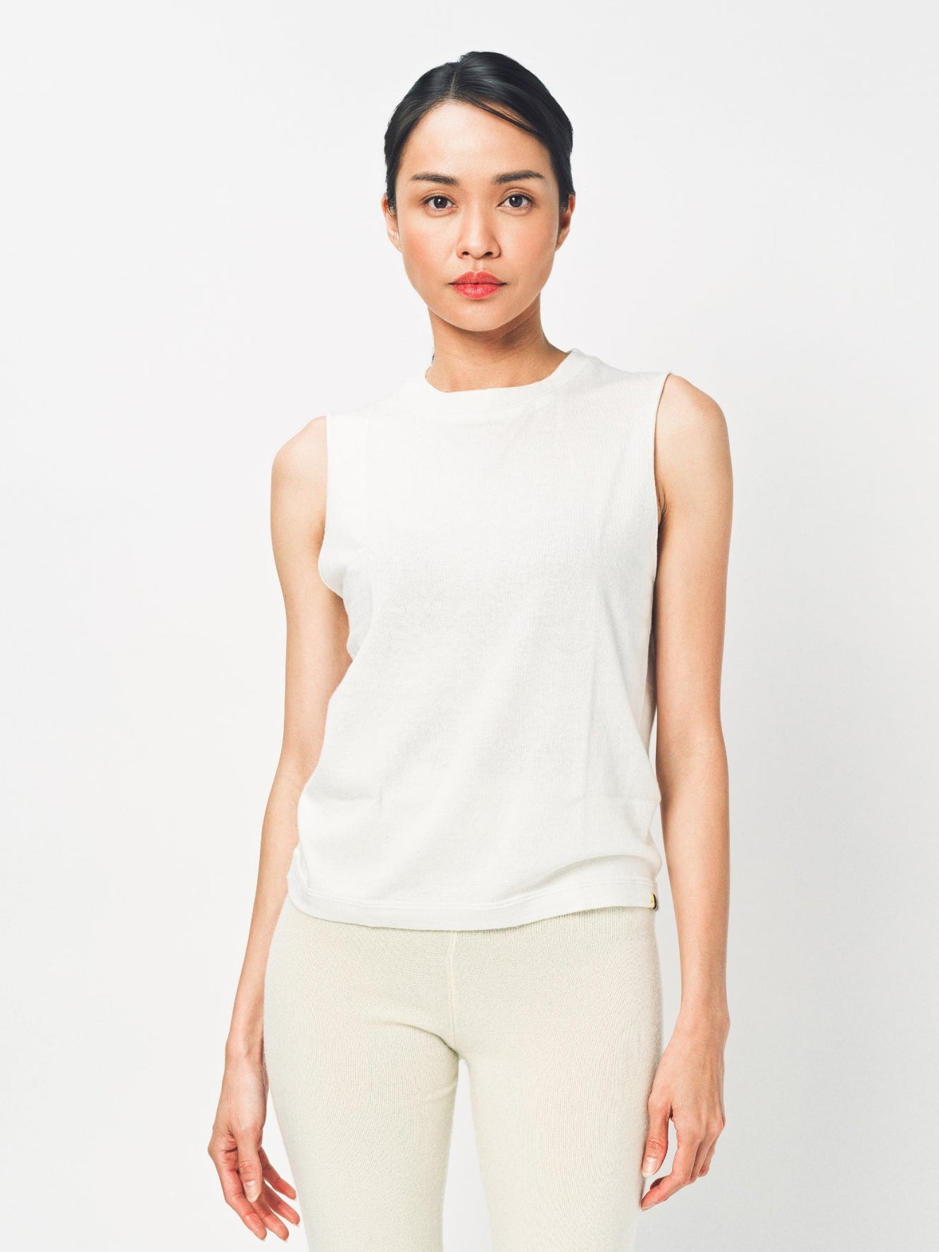 Extreme Cashmere Snow No 421 Player Top is a soft, skin-hugging muscle fit tank top in our breathable cotton cashmere blend. Finished with a flatlock hem, this short and boxy silhouette is a comfortable staple perfect for all seasons.