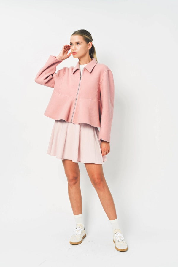 Extreme Cashmere No 442 Queen Coat is part of the Fall 25 Collection. The queen is a refined cashmere peplum jacket with a cropped, tailored fit. Crafted from double-faced cashmere, this structured statement piece features a full-length zipper and sleek slit pockets hidden in the horizontal seam. Fitted at the top, fluid and voluminous at the bottom, the queen is chic and playful in equal measure. Crafted with great attention to detail, this cashmere coat is largely handmade.