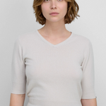 | INFO the mel is a short-sleeved cashmere sweater with a petite fit, inspired by a v-neck t-shirt. finished with rib-knit hem and cuffs, this knit top is ideal for effortless summer dressing. the mel comes in our lightweight summer cashmere, crafted from 100% loosely-knit cashmere. airy and laidback, it’s designed for easy movement and perfect for warmer weather. |